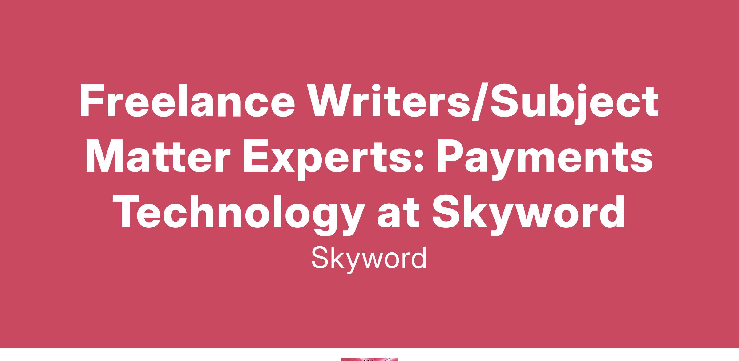 Skyword is seeking talented freelance writers and subject matter experts with an expertise in creating content that speaks to innovation in payments technology, and creating compelling content geared to an audience of retailers and leaders who would be utilizing this technology. Content created will cover thought leadership, consideration content and account-based marketing, specifically focused on payments technology encompassing payment processing and payment devices.