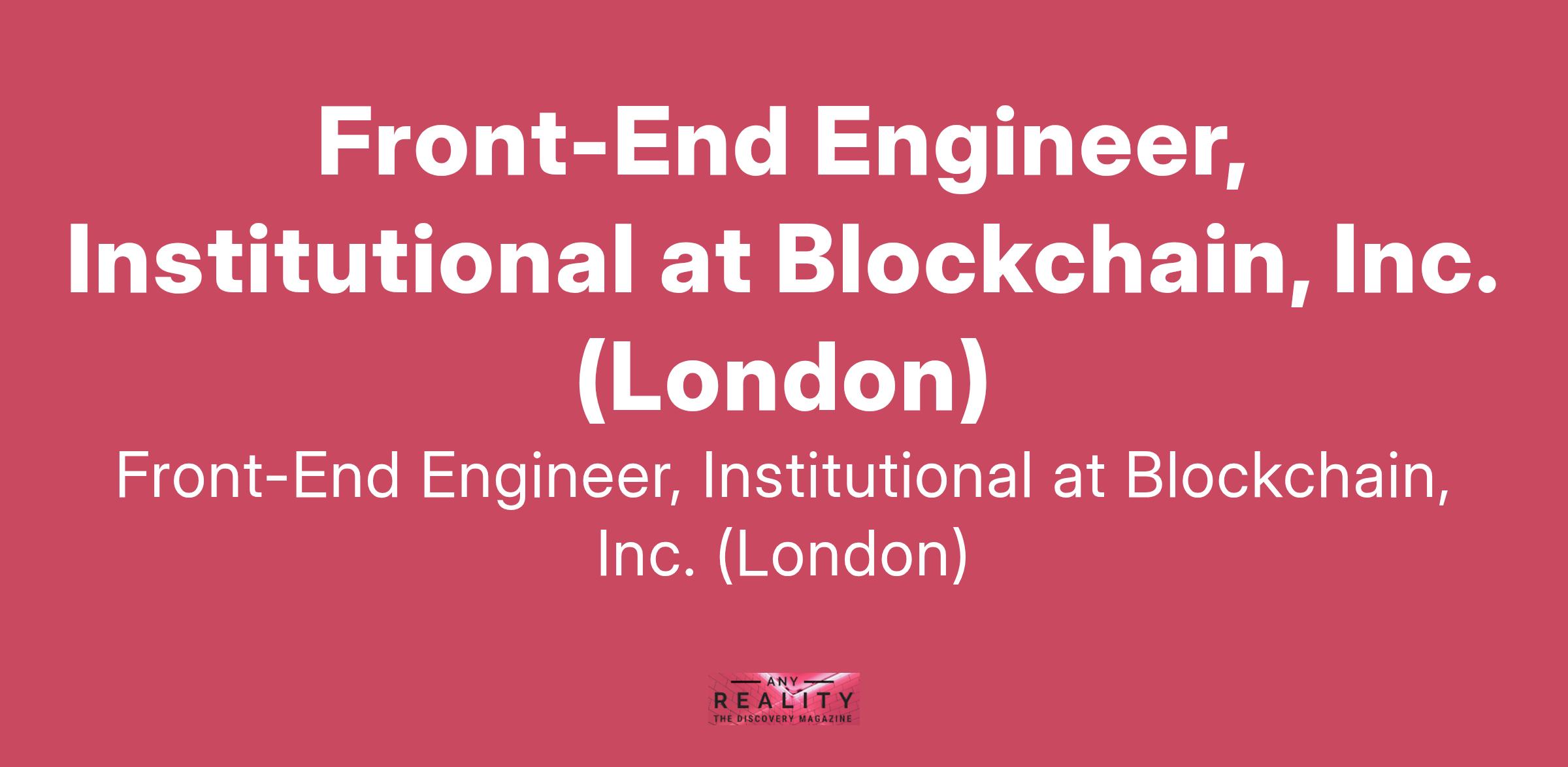 Front-End Engineer, Institutional at Blockchain, Inc. (London)