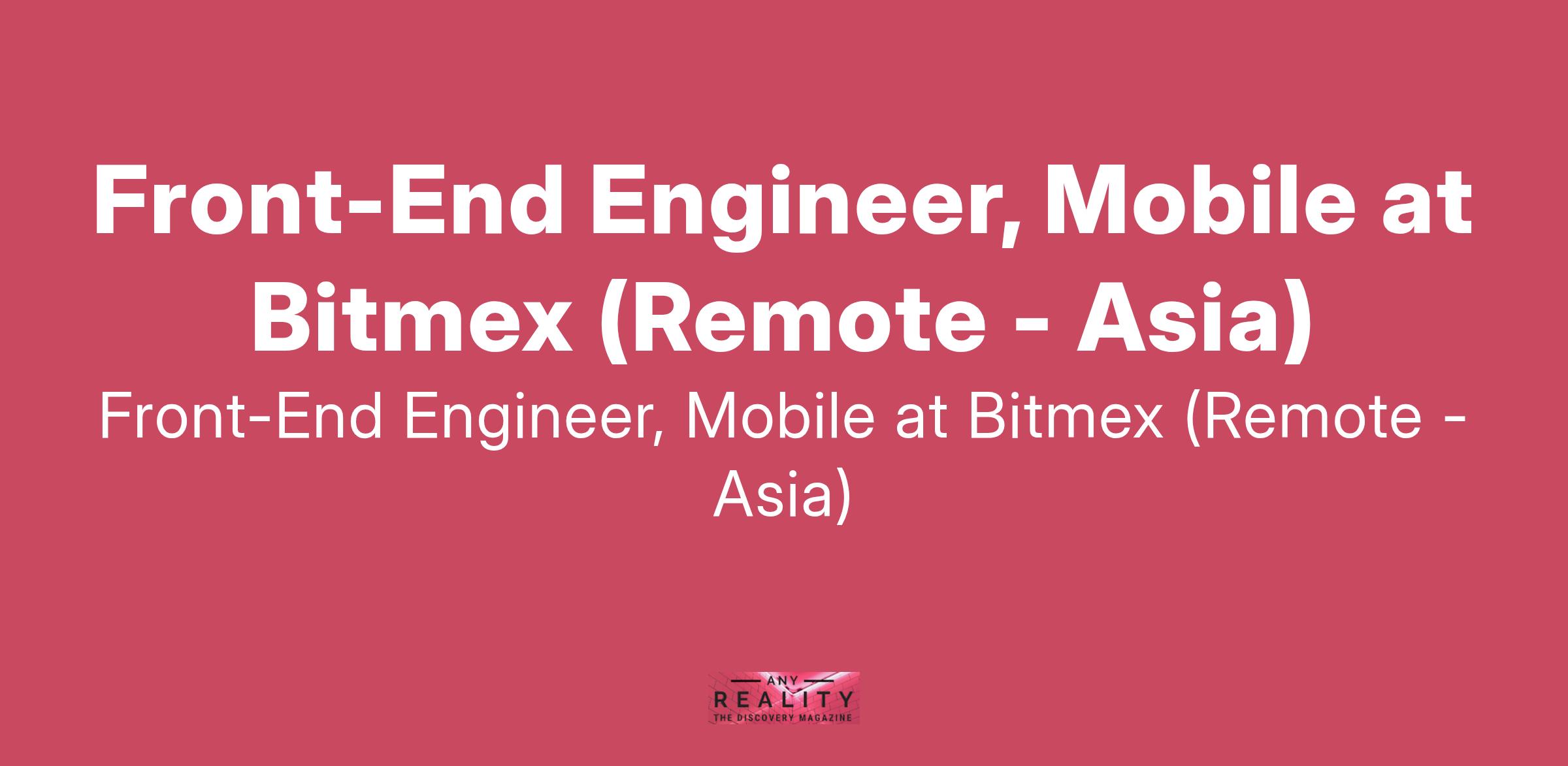 Front-End Engineer, Mobile at Bitmex (Remote - Asia)