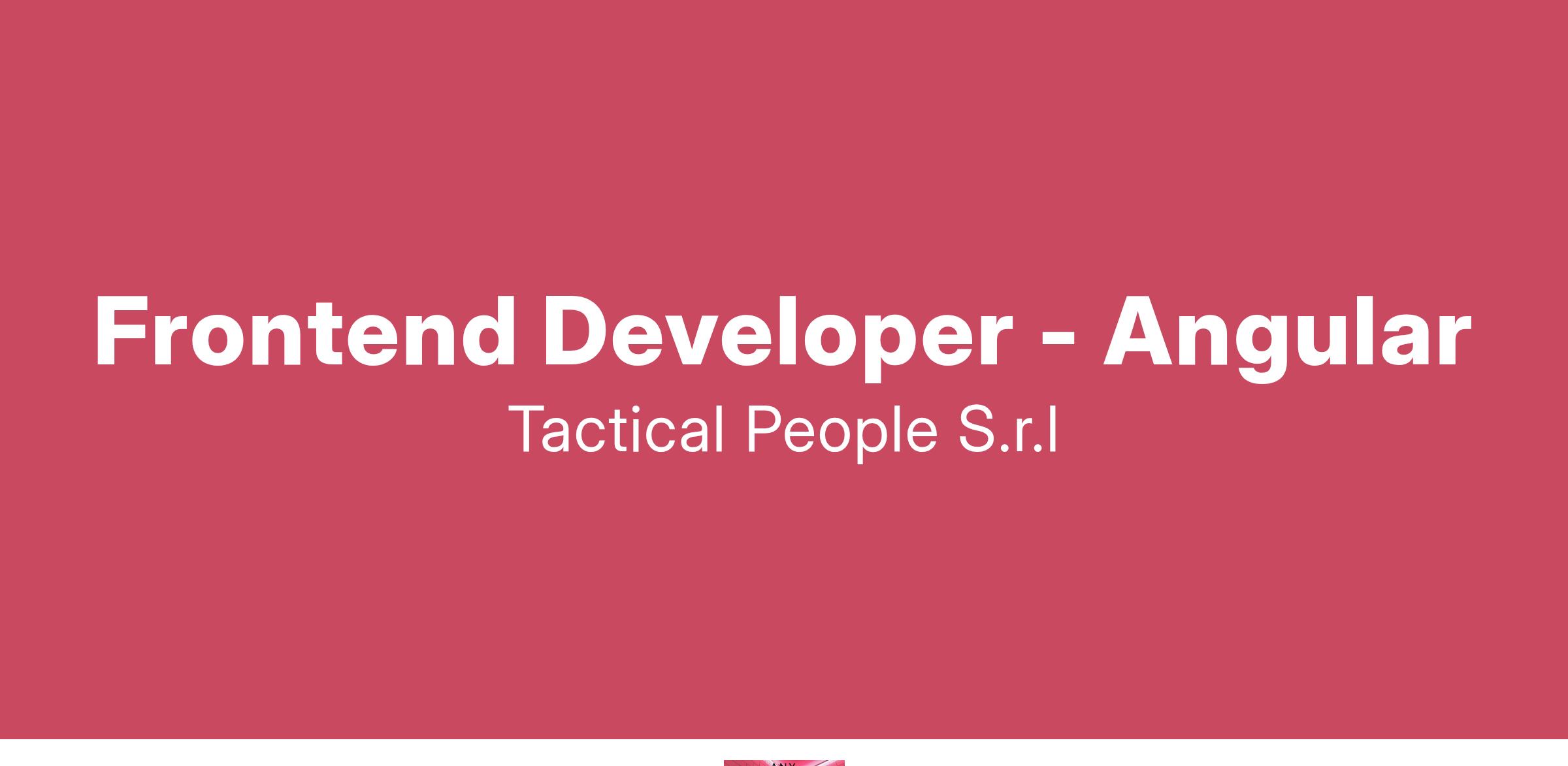 Unisciti a TACTICAL PEOPLE: Innovazione, Persone e Crescita nel Cuore della Digital Transformation Da oltre 20 anni, TACTICAL PEOPLE si posiziona come leader nel mercato ICT, guidando con passione e competenza i nostri clienti di medie e grandi dimensioni attraverso il dinamico percorso della digital transformation. La nostra mission è chiara: non solo abbracciare il cambiamento tecnologico, ma guidarlo, creando soluzioni all'avanguardia che plasmino il futuro digitale. In TACTICAL PEOPLE, crediamo fortemente nel mettere le persone al centro di ogni nostra iniziativa. Le persone sono il cuore pulsante della nostra azienda; il loro benessere, la loro crescita e il loro sviluppo sono la nostra priorità. Ci impegniamo a condividere le strategie aziendali con trasparenza e a fornire formazione e supporto a ogni livello, garantendo che ogni membro del team sia equipaggiato per eccellere e innovare. Stiamo cercando individui che condividano la nostra visione, che siano guidati dalla passione per la tecnologia e che desiderino essere protagonisti nella costruzione di un futuro digitale più luminoso. Se sei pronto a far parte di una squadra che valorizza il talento, incoraggia la crescita personale e professionale e lavora in prima linea nel settore della digital transformation, TACTICAL PEOPLE è il posto giusto per te. Posizione Aperta: Frontend Developer - Angular Sede: Remoto Descrizione del ruolo: Ricerchiamo uno sviluppatore con comprovata esperienza in Angular da inserire in un progetto in ambito Energy. Cosa offriamo: Inserimento immediato in una Tech Community giovane e dinamica. TACTICAL LEARNING HUB, con corsi di aggiornamento e formazione. Il presente annuncio è rivolto ad entrambi i sessi, ai sensi delle leggi 903/77 e 125/91, e a persone di tutte le età e tutte le nazionalità, ai sensi dei decreti legislativi 215/03 e 216/03. I curricula dovranno pervenire completi di dicitura che autorizza il trattamento dei propri dati: “Si autorizza al trattamento dei dati personali ai sensi del D. Lgs. 196/2003.