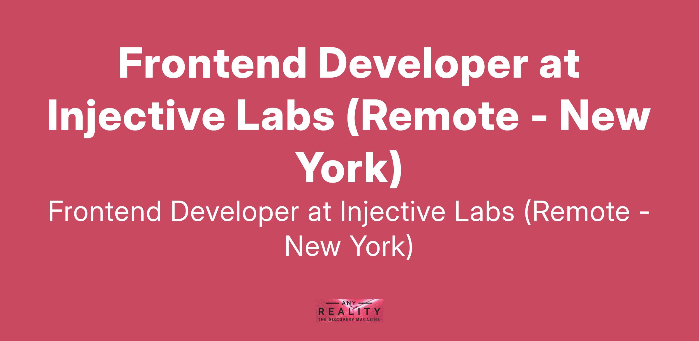 Frontend Developer at Injective Labs (Remote - New York)