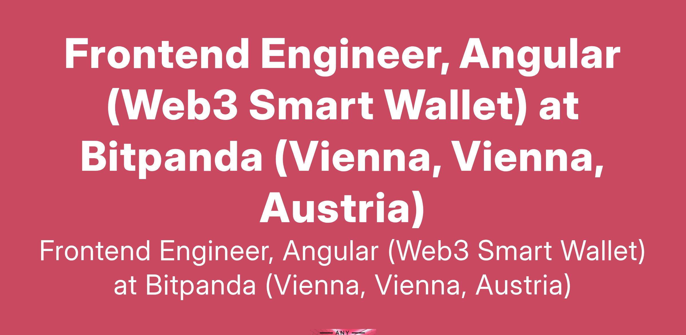 Frontend Engineer, Angular (Web3 Smart Wallet) at Bitpanda (Vienna, Vienna, Austria)