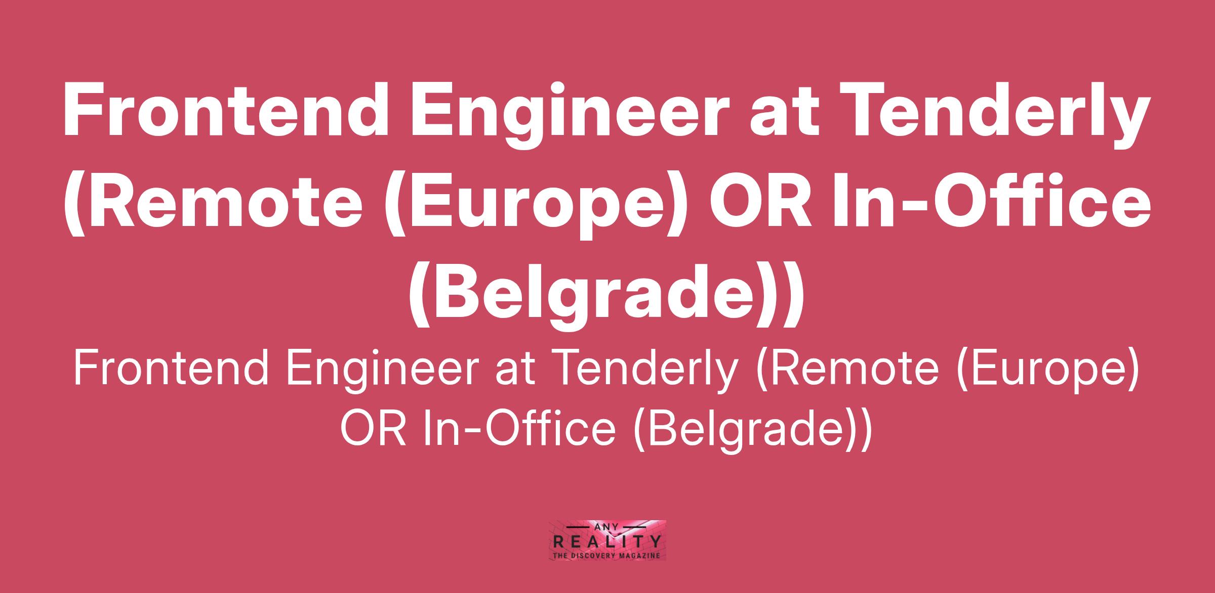 Frontend Engineer at Tenderly (Remote (Europe) OR In-Office (Belgrade))