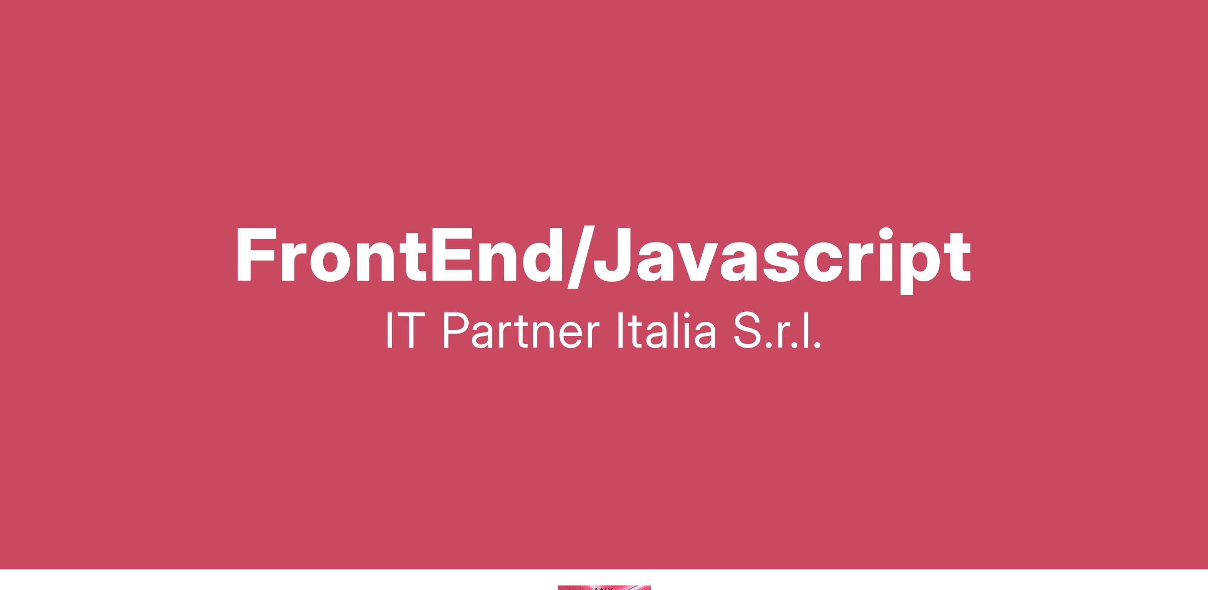 Competenze richieste: IT Partner Italia ricerca candidati con il seguente profilo professionale: FrontEnd/Javascript Il candidato ideale deve avere le seguenti competenze e caratteristiche: - Ottima conoscenza di Javascript - Esperienza consolidata in Html5/CSS e Javascript (ES5/ES6) - Esperienza di sviluppo con framework Angular - Esperienza con UX design e progettazione di interfacce grafiche - Predisposizione al lavoro in team e per obiettivi - Capacità organizzative, buone doti relazionali, flessibilità Si prega di inviare il CV dettagliato in formato europeo all'indirizzo indicando il codice posizione 2025-006-MI-JSFE ed autorizzando il trattamento dei dati personali ai sensi del D. Lgs. 196/2003. L'offerta e' rivolta a candidati di entrambi i sessi nel rispetto delle norme sulle parita' di trattamento in materia di occupazione e di condizioni di lavoro (D.Lgs. 216/03).
