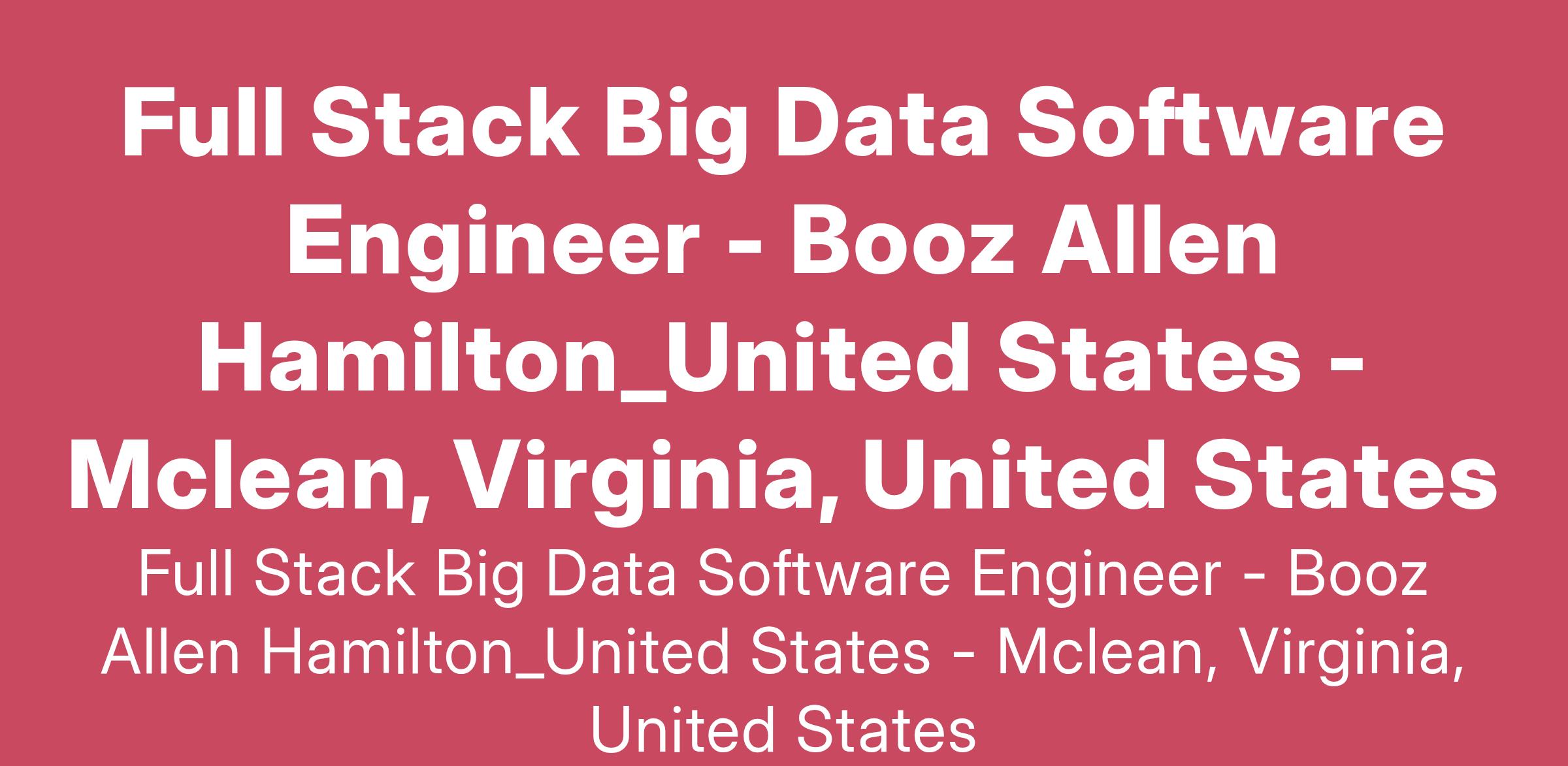 This role is more than just coding. As a full stack big data software engineer at Booz Allen, you’ll use your passion to master new tools and techniques and identify needed system improvements. You’ll help clients overcome their most difficult challenges using the latest architectural approaches, tools, and technologies. You’ll make sure the solution developed by the team considers the architecture and operating environment, as well as future functionality and enhancements.