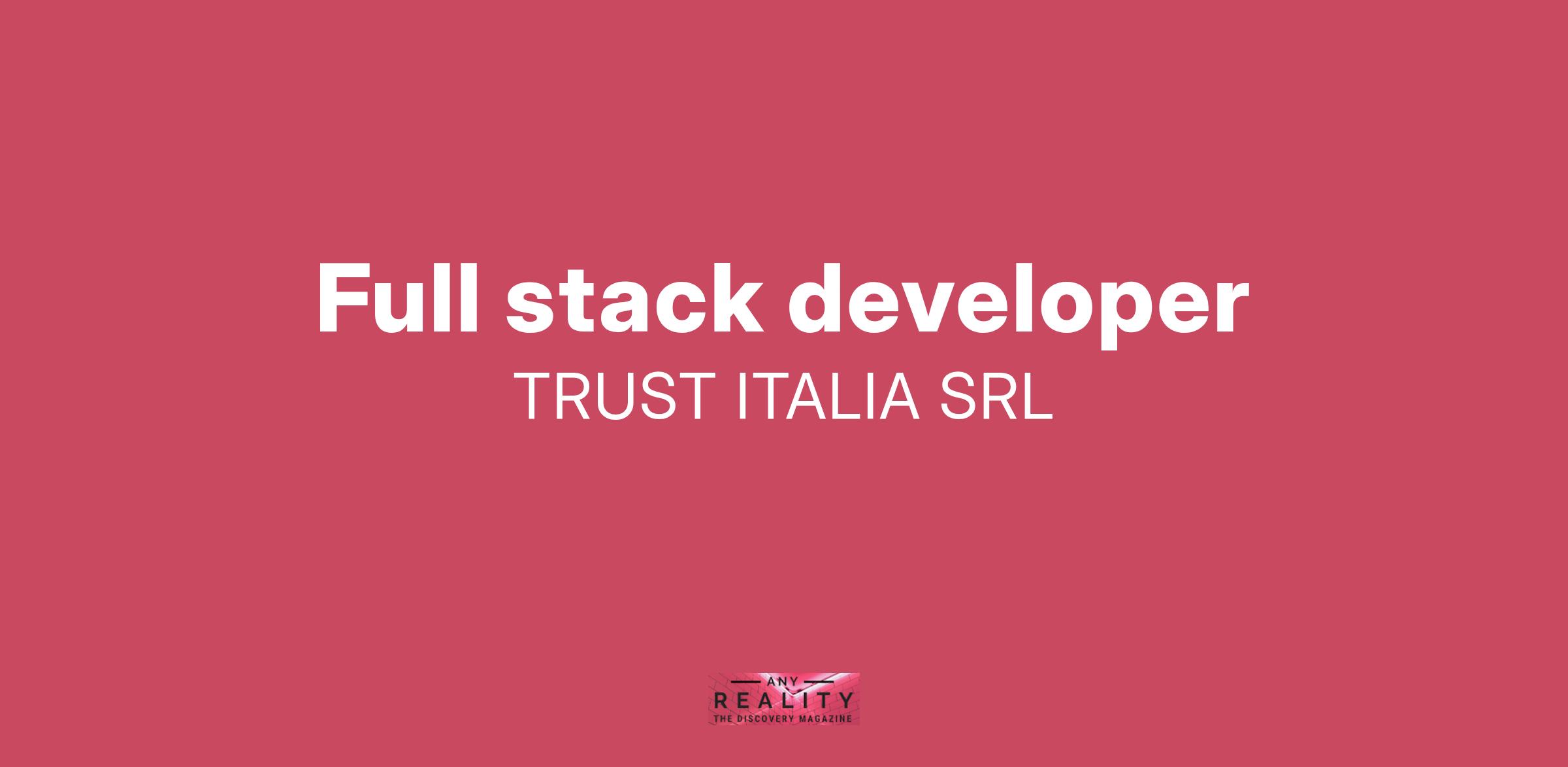 Trust Italia Srl è una società di consulenza informatica nata da professionisti del settore di decennale esperienza offre soluzioni globali per l’informatica negli ambienti web e non solo. Soluzioni che sono il punto d’incontro tra un ampio bagaglio di competenze progettuali e le più avanzate metodologie di sviluppo. Genera valore nelle aziende fornendo soluzioni in grado di far funzionare il loro business. Trust Italia ha un forte Know How in ambito bancario / Assicurativo nonché è fortemente legata allo sviluppo di applicativi custom per tutti gli altri settori tra cui : Servizi, Oil&gas, Sanità. Attualmente stiamo cercando: 1 Full stack developer Disponibilità immediata e/o a breve.