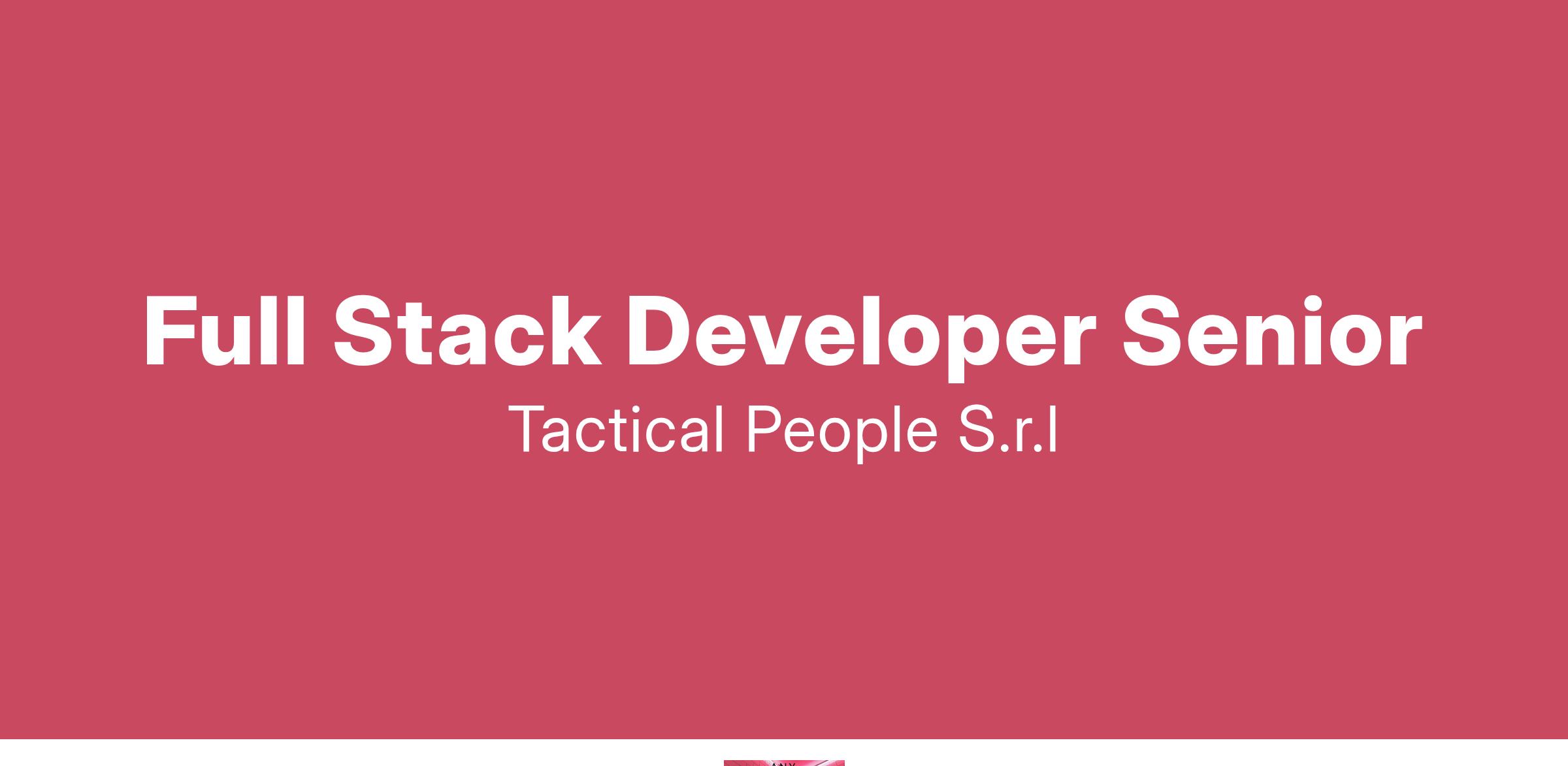 Unisciti a TACTICAL PEOPLE: Innovazione, Persone e Crescita nel Cuore della Digital Transformation Da oltre 20 anni, TACTICAL PEOPLE si posiziona come leader nel mercato ICT, guidando con passione e competenza i nostri clienti di medie e grandi dimensioni attraverso il dinamico percorso della digital transformation. La nostra mission è chiara: non solo abbracciare il cambiamento tecnologico, ma guidarlo, creando soluzioni all'avanguardia che plasmino il futuro digitale. In TACTICAL PEOPLE, crediamo fortemente nel mettere le persone al centro di ogni nostra iniziativa. Le persone sono il cuore pulsante della nostra azienda; il loro benessere, la loro crescita e il loro sviluppo sono la nostra priorità. Ci impegniamo a condividere le strategie aziendali con trasparenza e a fornire formazione e supporto a ogni livello, garantendo che ogni membro del team sia equipaggiato per eccellere e innovare. Stiamo cercando individui che condividano la nostra visione, che siano guidati dalla passione per la tecnologia e che desiderino essere protagonisti nella costruzione di un futuro digitale più luminoso. Se sei pronto a far parte di una squadra che valorizza il talento, incoraggia la crescita personale e professionale e lavora in prima linea nel settore della digital transformation, TACTICAL PEOPLE è il posto giusto per te. Posizione Aperta: Full Stack Developer Senior Sede: Porto di San Giorgio Descrizione del Ruolo: Il candidato ideale deve avere minimo 5 anni di esperienza in sviluppo Full Stack in progetti di complessità medio-alta. Cosa offriamo: Inserimento immediato in una Tech Community giovane e dinamica. TACTICAL LEARNING HUB, con corsi di aggiornamento e formazione. Il presente annuncio è rivolto ad entrambi i sessi, ai sensi delle leggi 903/77 e 125/91, e a persone di tutte le età e tutte le nazionalità, ai sensi dei decreti legislativi 215/03 e 216/03. I curricula dovranno pervenire completi di dicitura che autorizza il trattamento dei propri dati: “Si autorizza al trattamento dei dati personali ai sensi del D. Lgs. 196/2003.