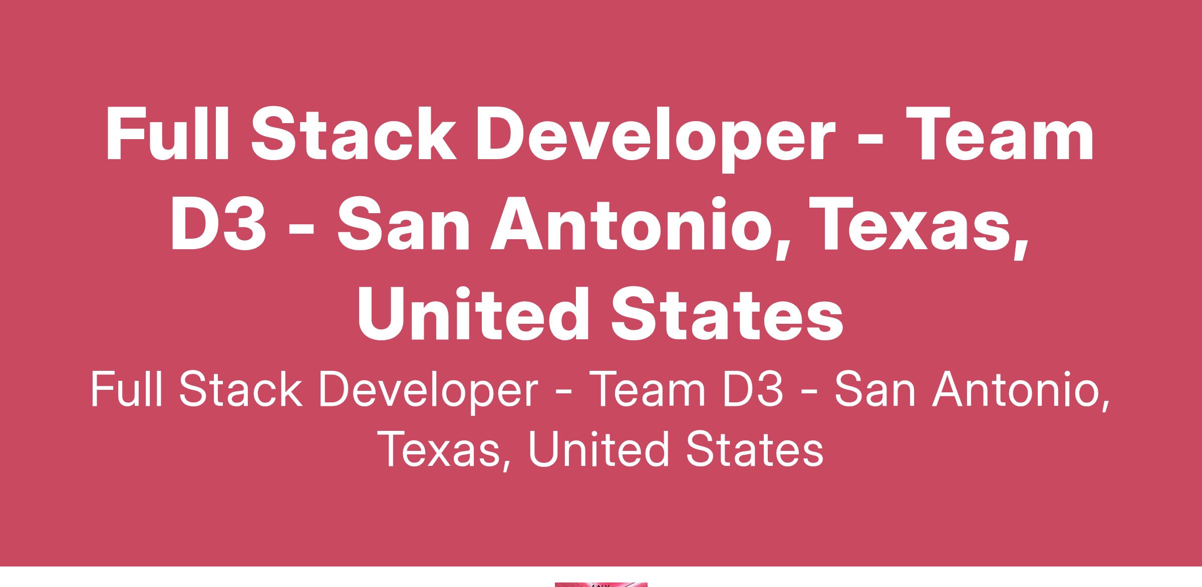 Full Stack Developer - Team D3 - San Antonio, Texas, United States