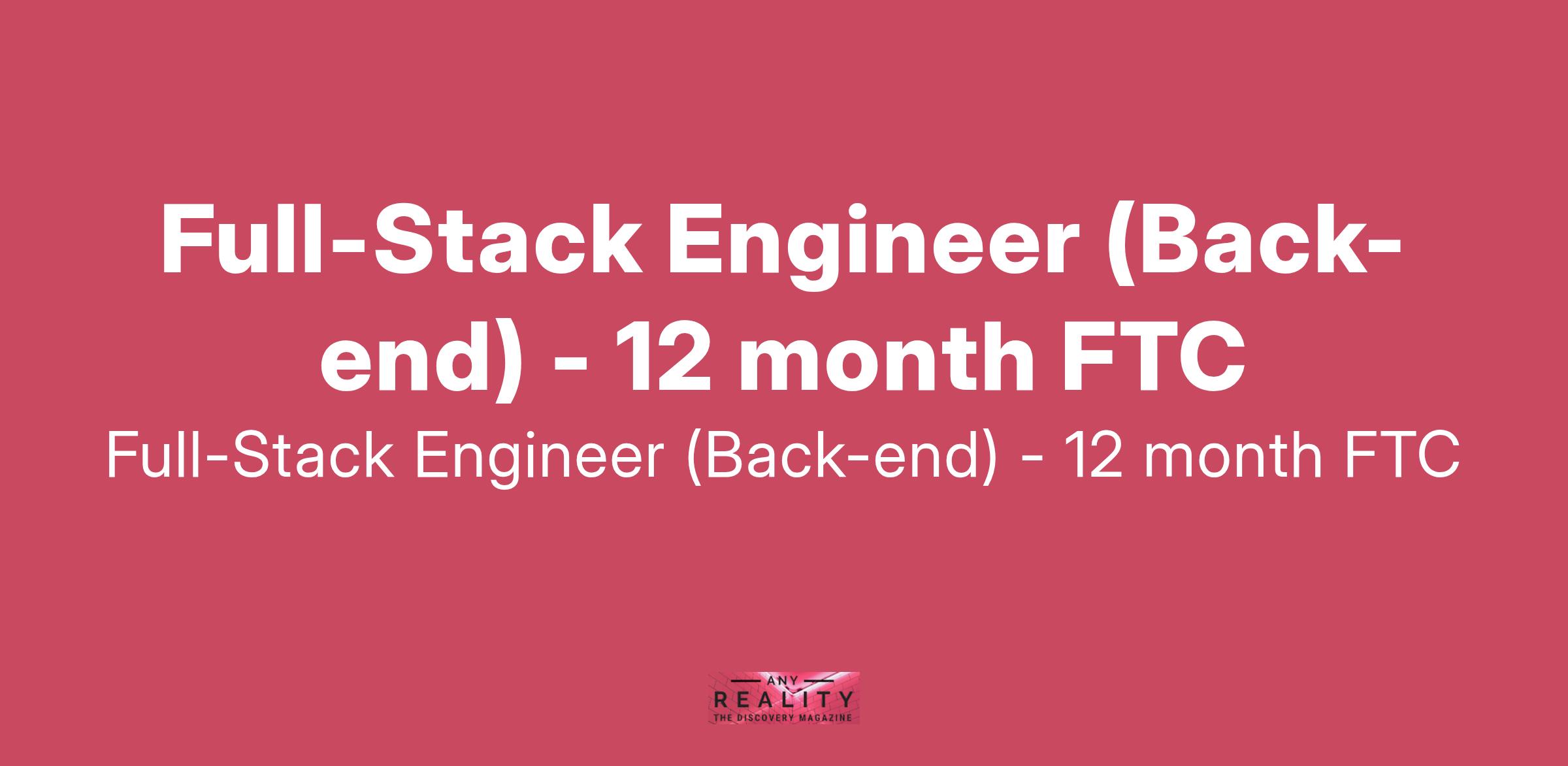 Full-Stack Engineer (Back-end) - 12 month FTC