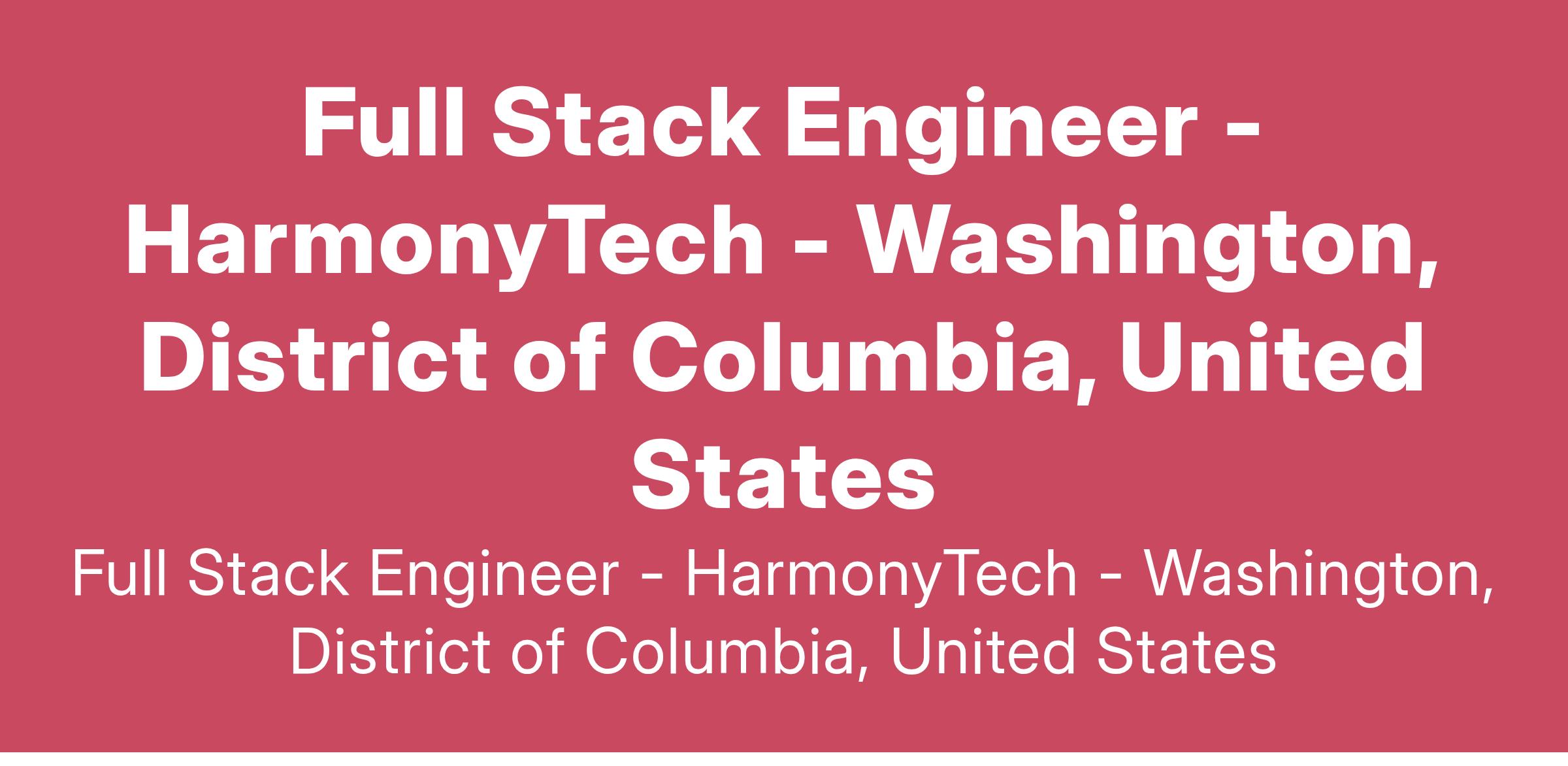 HarmonyTech believes in a policy of equal employment and opportunity for all people based on merit. We are an Equal Opportunity Employer (EEO) and Drug Free Workplace Employer. All qualified applicants will receive consideration for employment without regard to race, color, religion, sex, sexual orientation, gender identity or national origin or any other category protected by applicable federal, state or local laws.