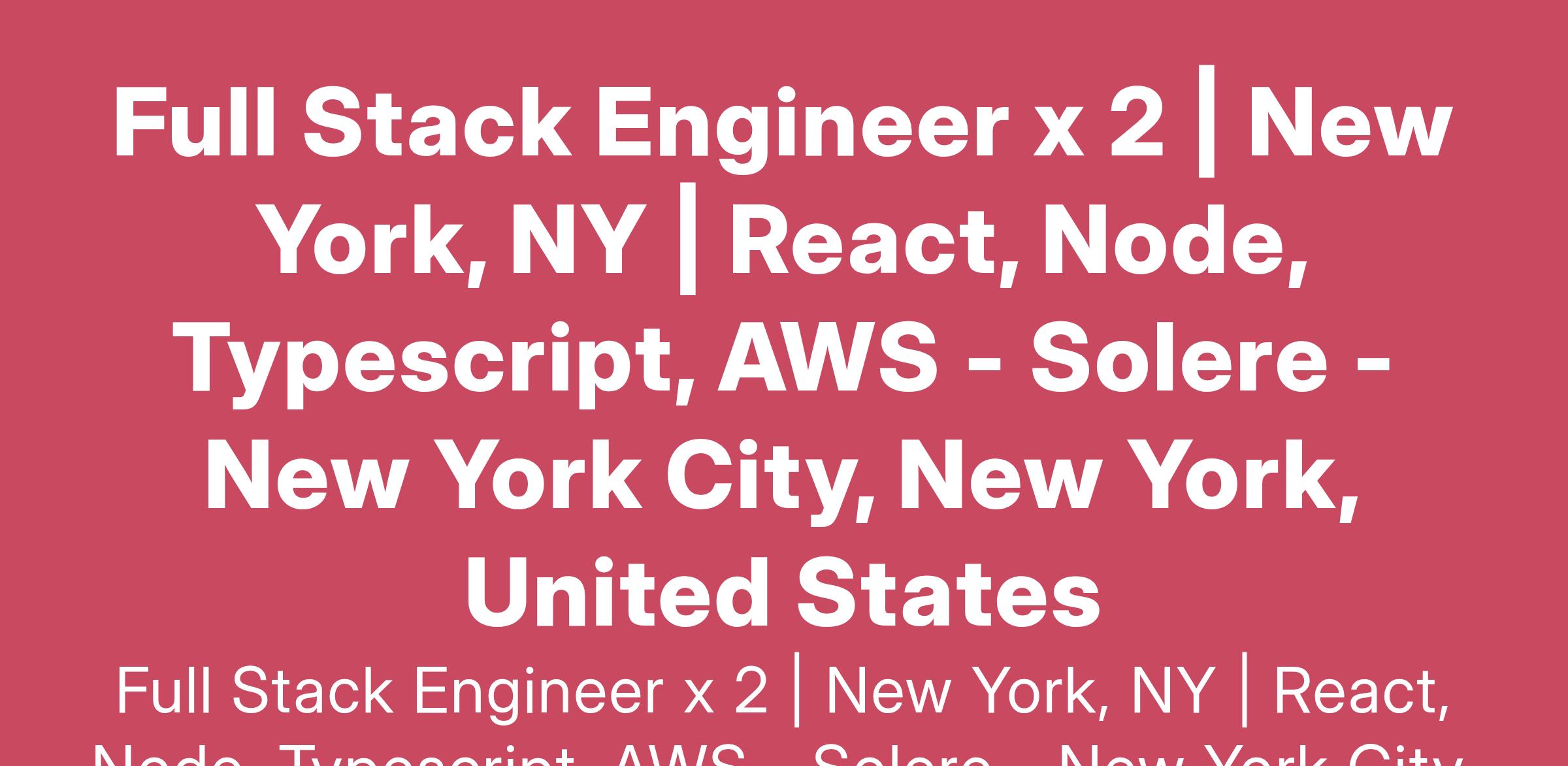 Job Title: Full Stack Developer | React, Node, Typescript, AWS
