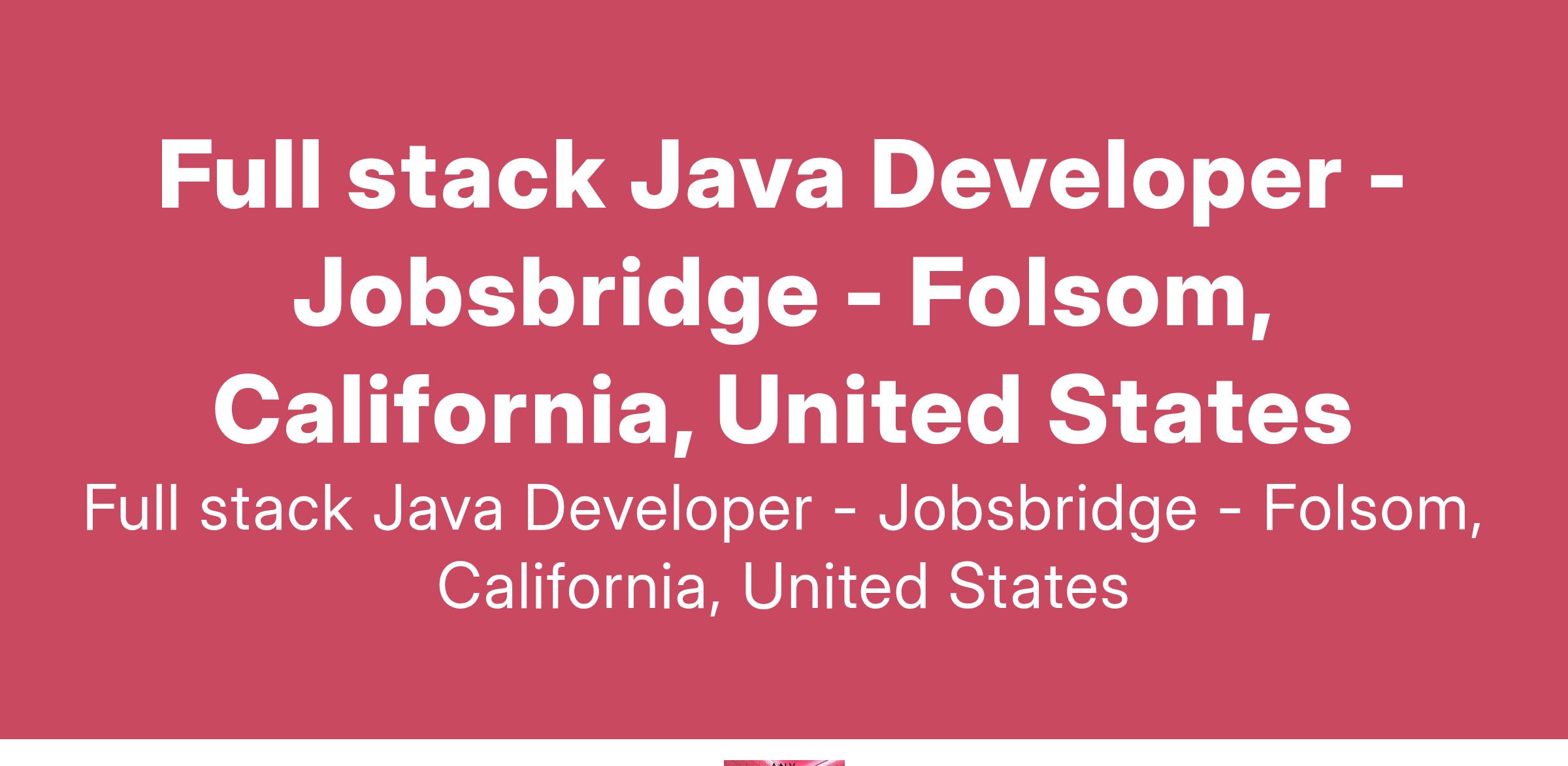 Full stack Java Developer - Jobsbridge - Folsom, California, United States