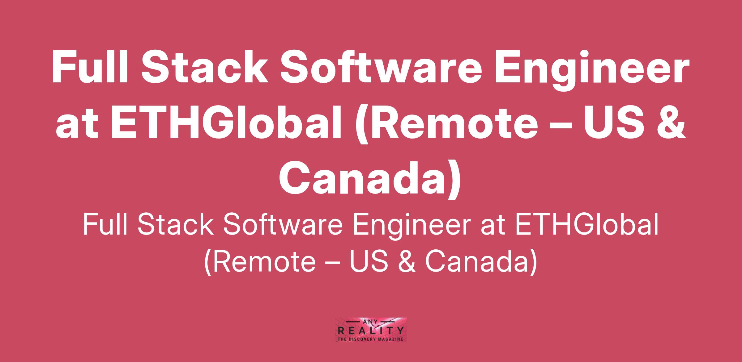Full Stack Software Engineer at ETHGlobal (Remote – US & Canada)