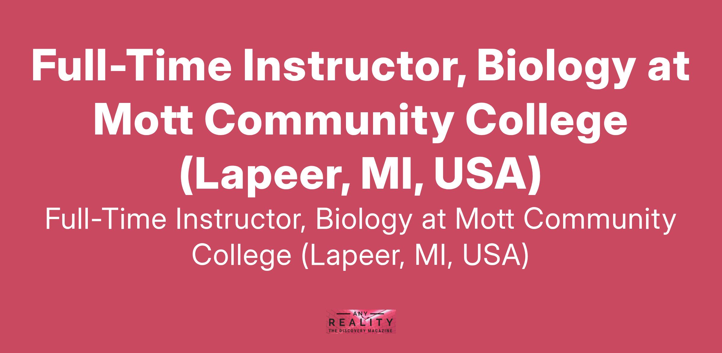 Full-Time Instructor, Biology at Mott Community College (Lapeer, MI, USA)