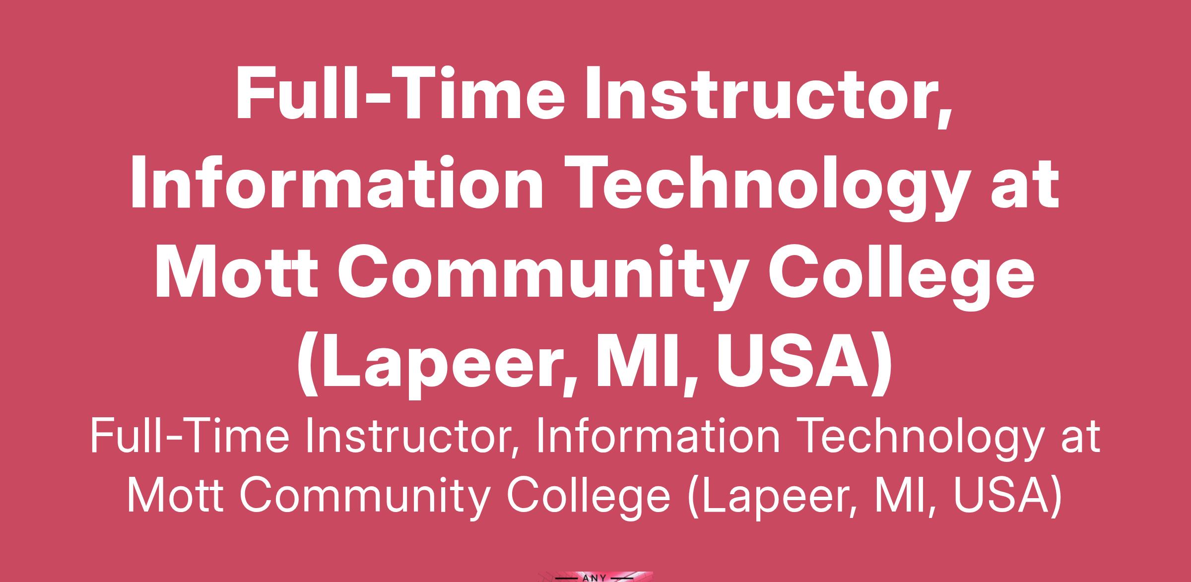 Full-Time Instructor, Information Technology at Mott Community College (Lapeer, MI, USA)