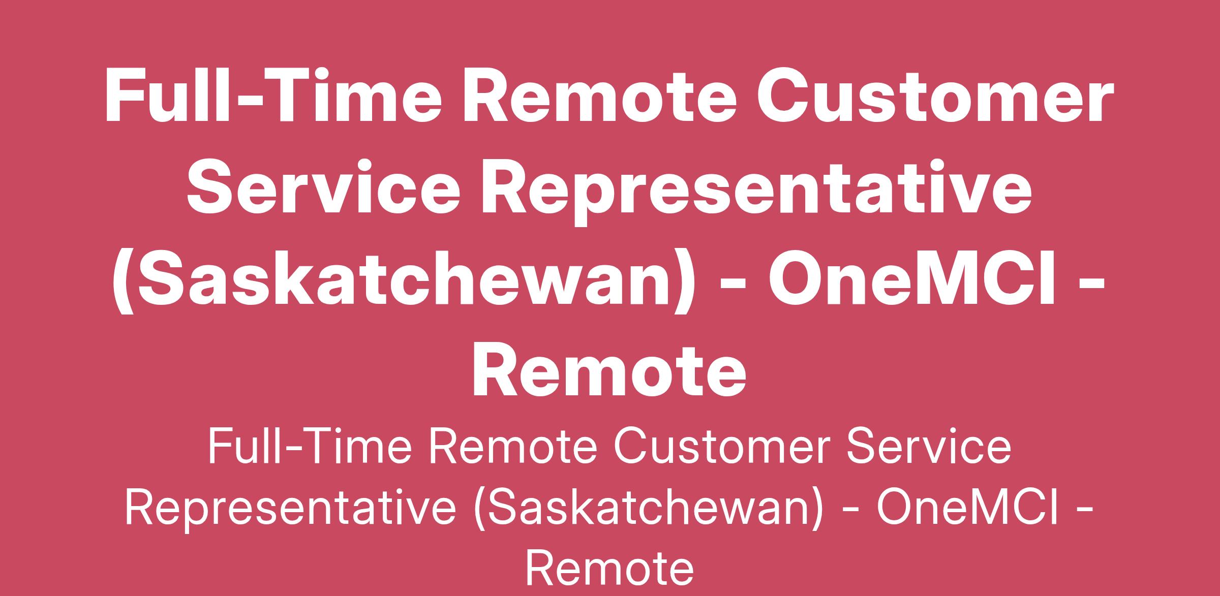 Full-Time Remote Customer Service Representative (Saskatchewan) - OneMCI - Remote