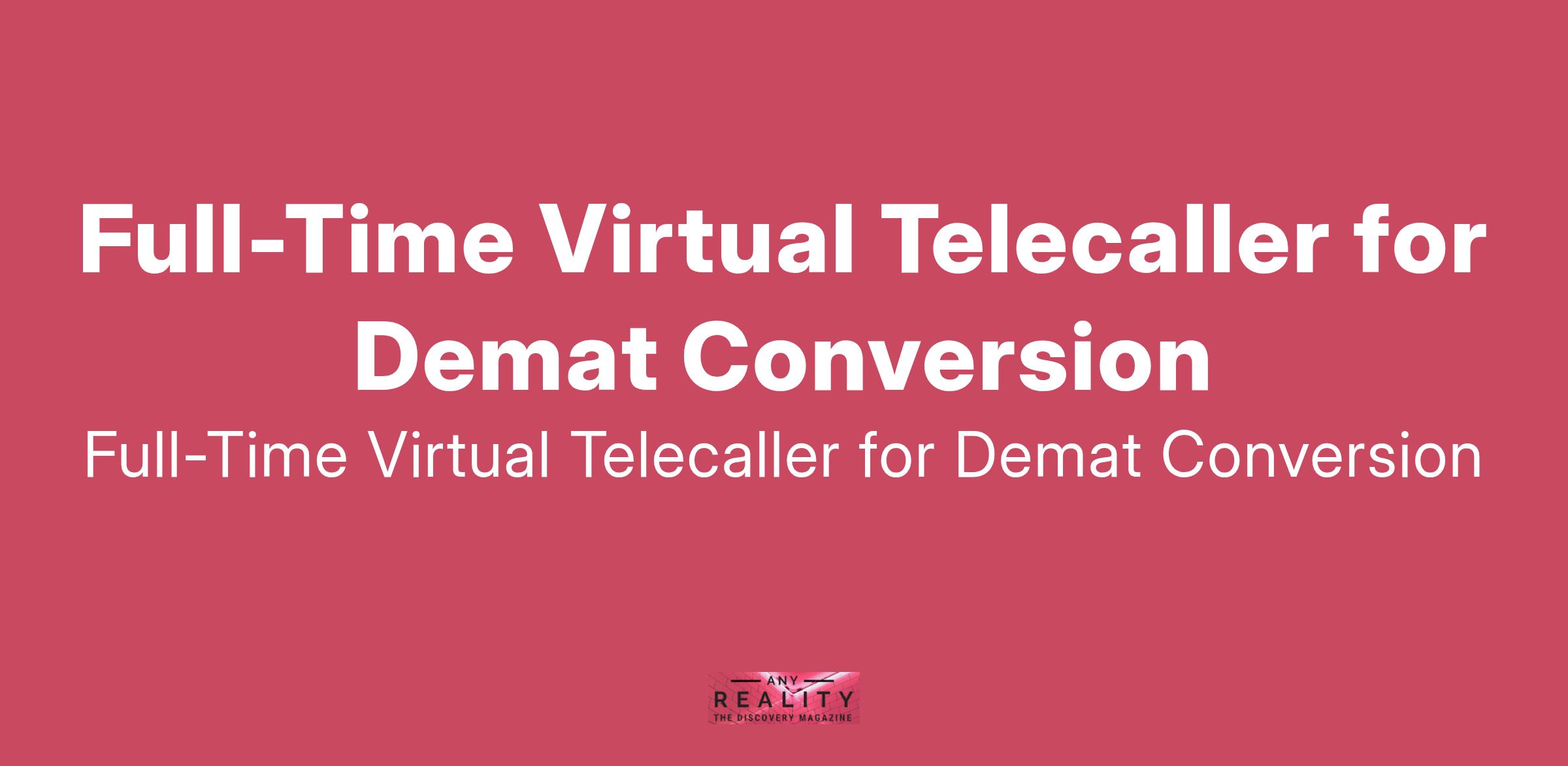 I'm seeking a full-time virtual telecaller assistant with a strong background in the financial sector. Your primary goal will be converting demat accounts and your success will be measured based on the number of accounts you convert... (Budget: ₹12500 - ₹37500 INR, Jobs: DEMAT, Financial Markets, Sales, Telemarketing, Virtual Assistant)