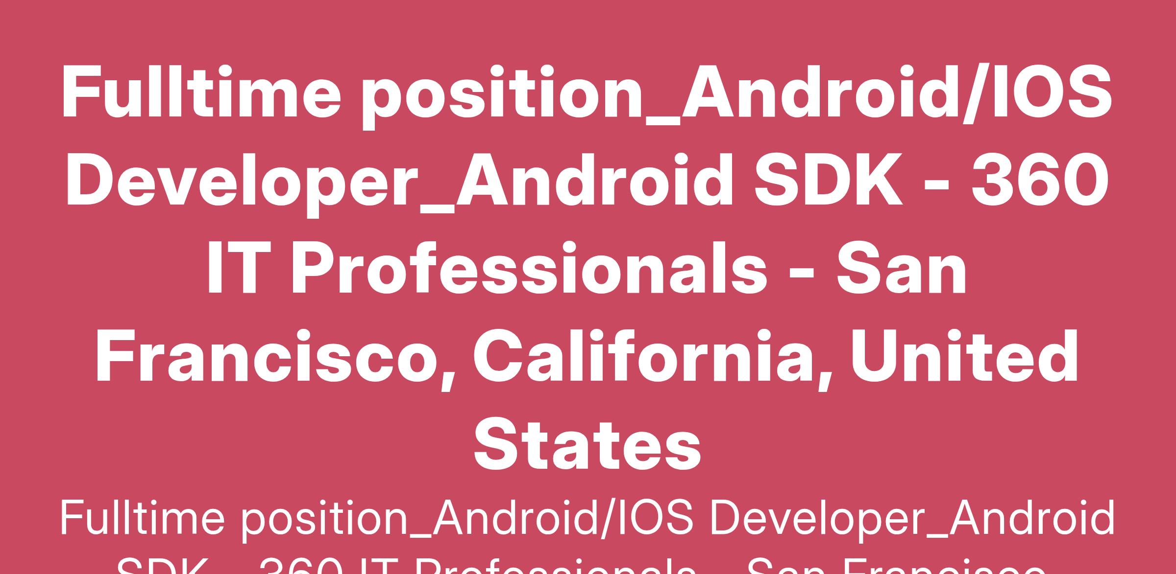 We are looking to fill multiple positions for Android and IOS Developers in San Francisco CA.