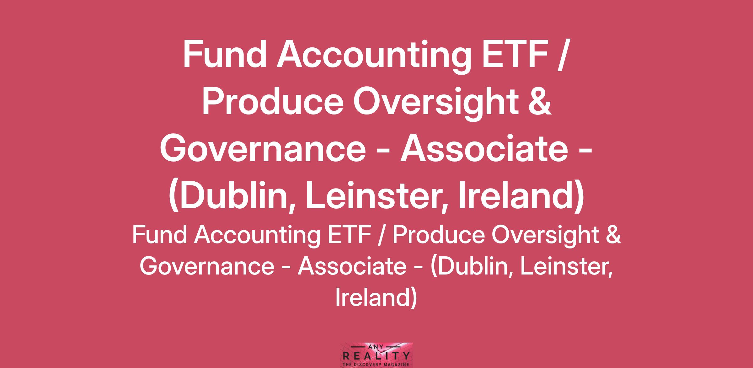 Are you searching for a rewarding, challenging, multi-faceted opportunity with the world's largest asset manager? Look no further! At BlackRock we are seeking a passionate Fund Accountant to join our Global Accounting and Product Oversight team supporting our growing Irish Exchange Traded Fund (ETF) ranges.