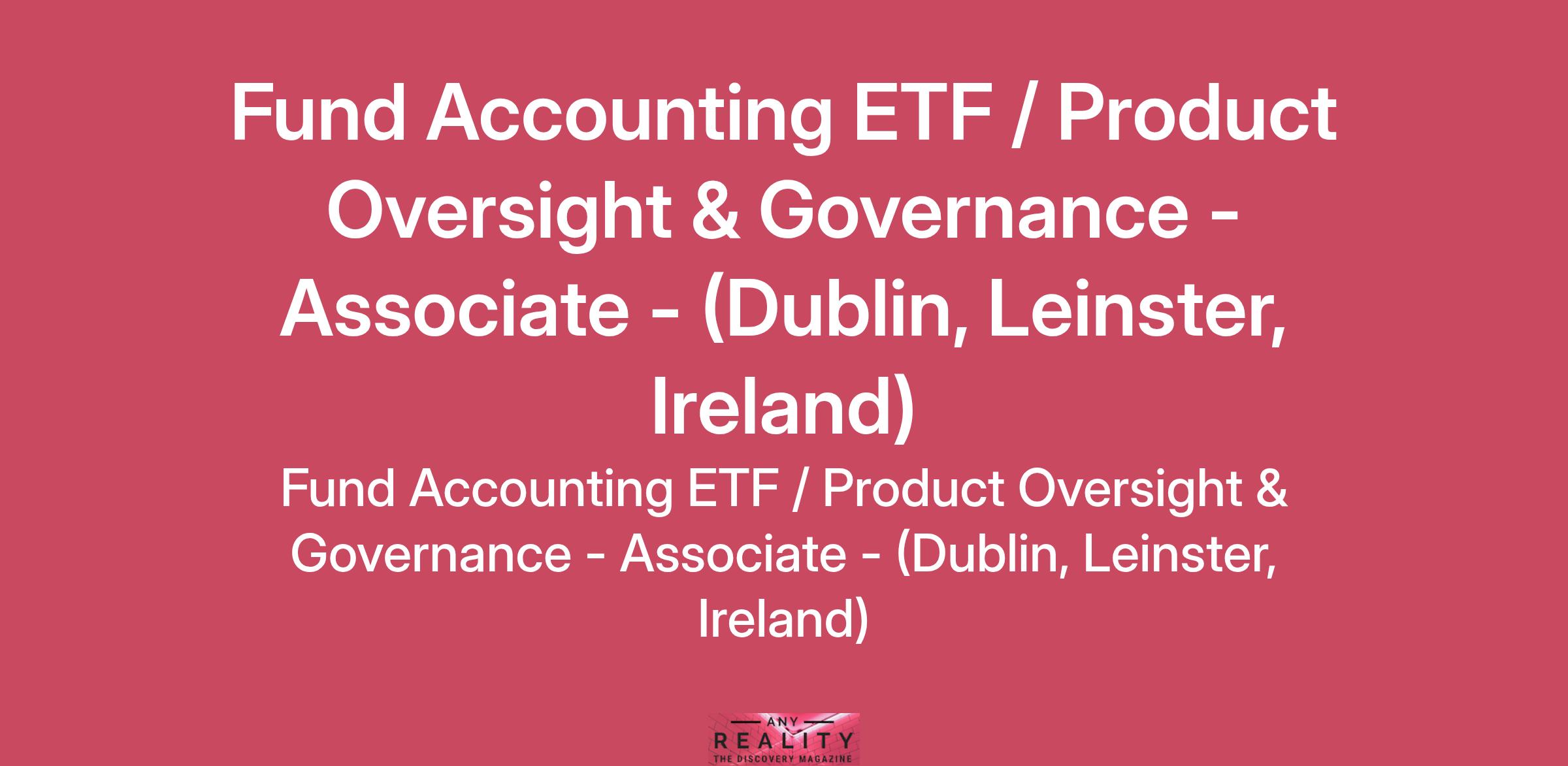 Are you searching for a rewarding, challenging, multi-faceted opportunity with the world's largest asset manager? Look no further! At BlackRock we are seeking a passionate Fund Accountant to join our Global Accounting and Product Oversight team supporting our growing Irish Exchange Traded Fund (ETF) ranges.