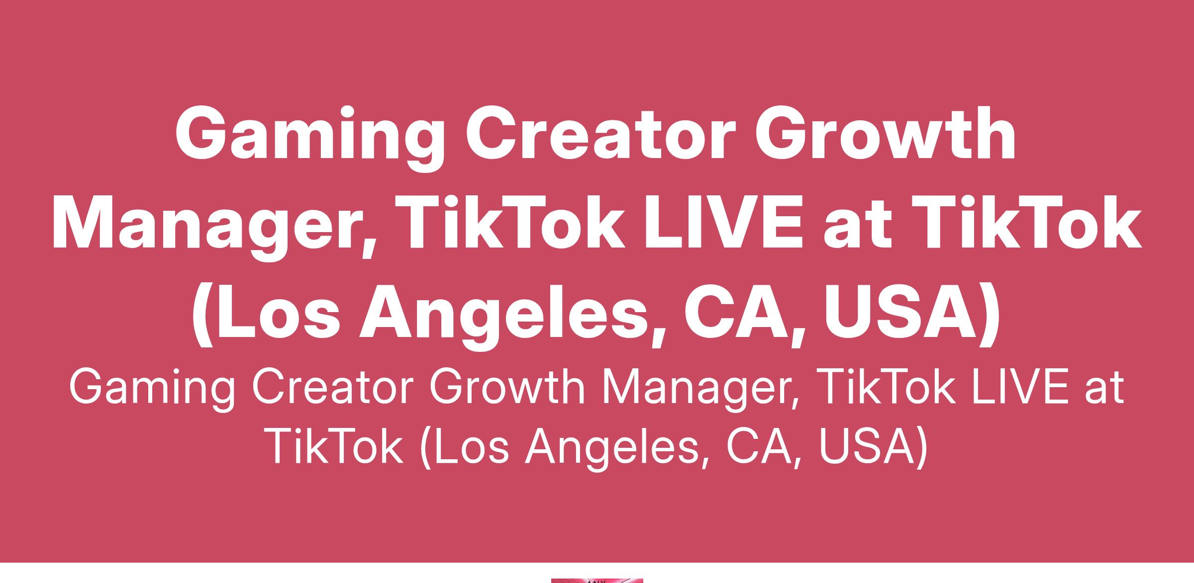 Gaming Creator Growth Manager, TikTok LIVE at TikTok (Los Angeles, CA, USA)