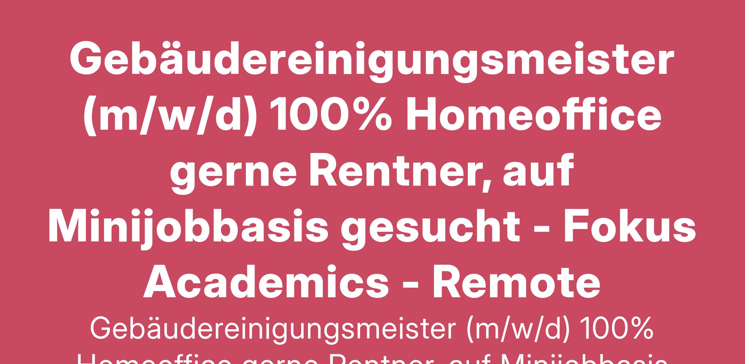 Gebäudereinigungsmeister (m/w/d)