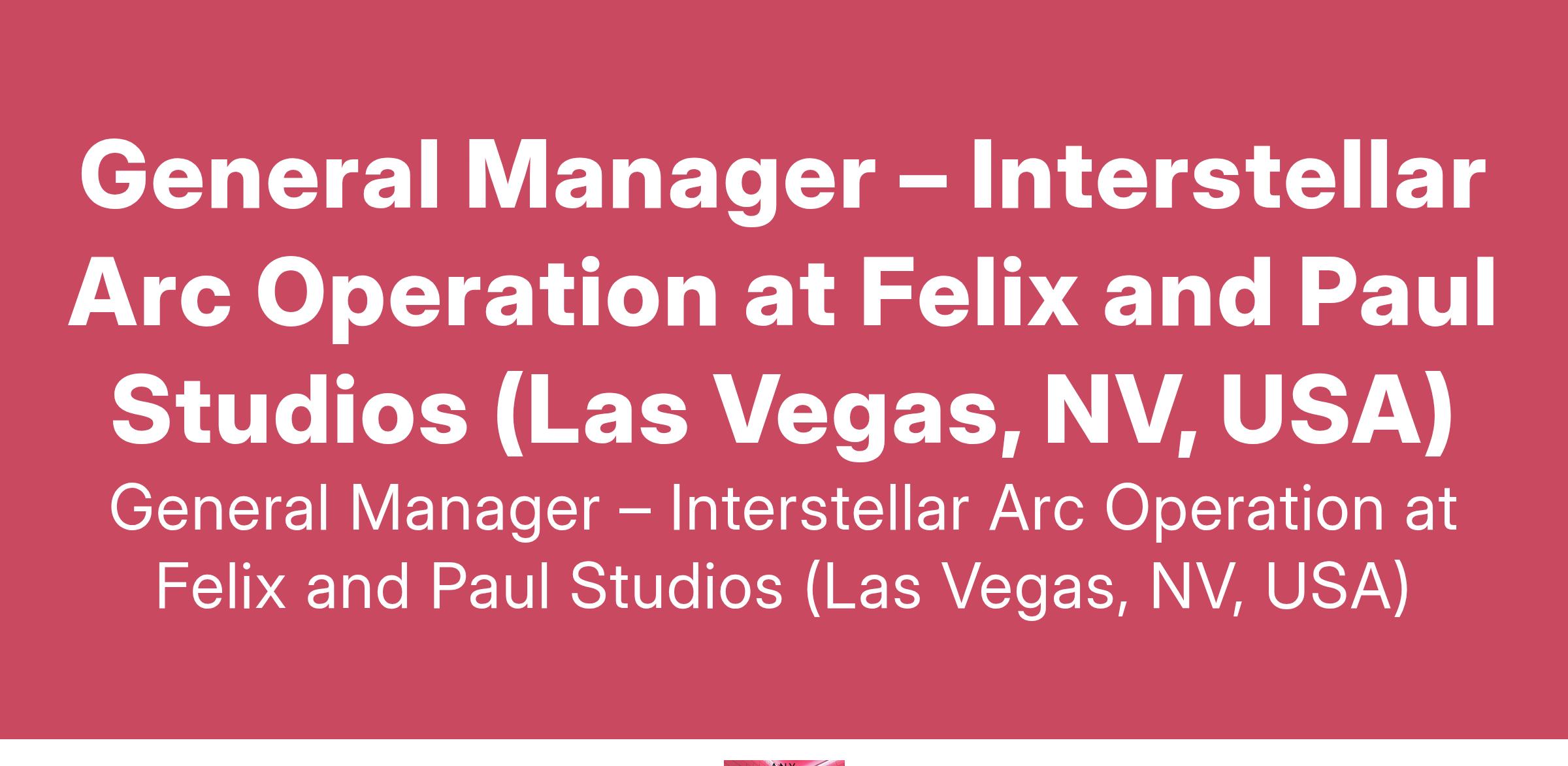 General Manager – Interstellar Arc Operation at Felix and Paul Studios (Las Vegas, NV, USA)