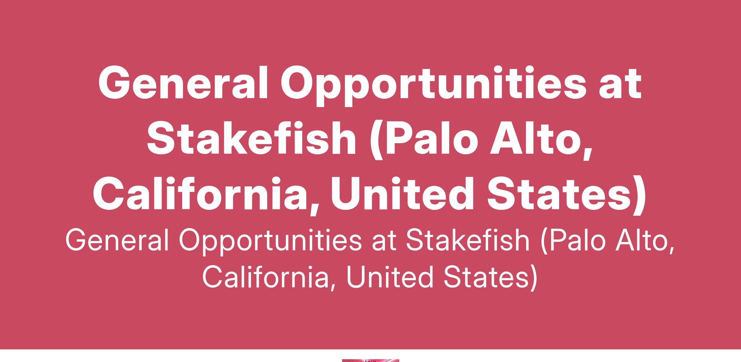 General Opportunities at Stakefish (Palo Alto, California, United States)