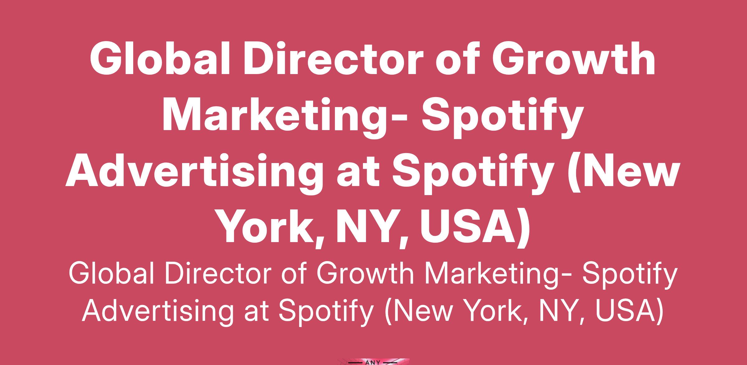 Global Director of Growth Marketing- Spotify Advertising at Spotify (New York, NY, USA)