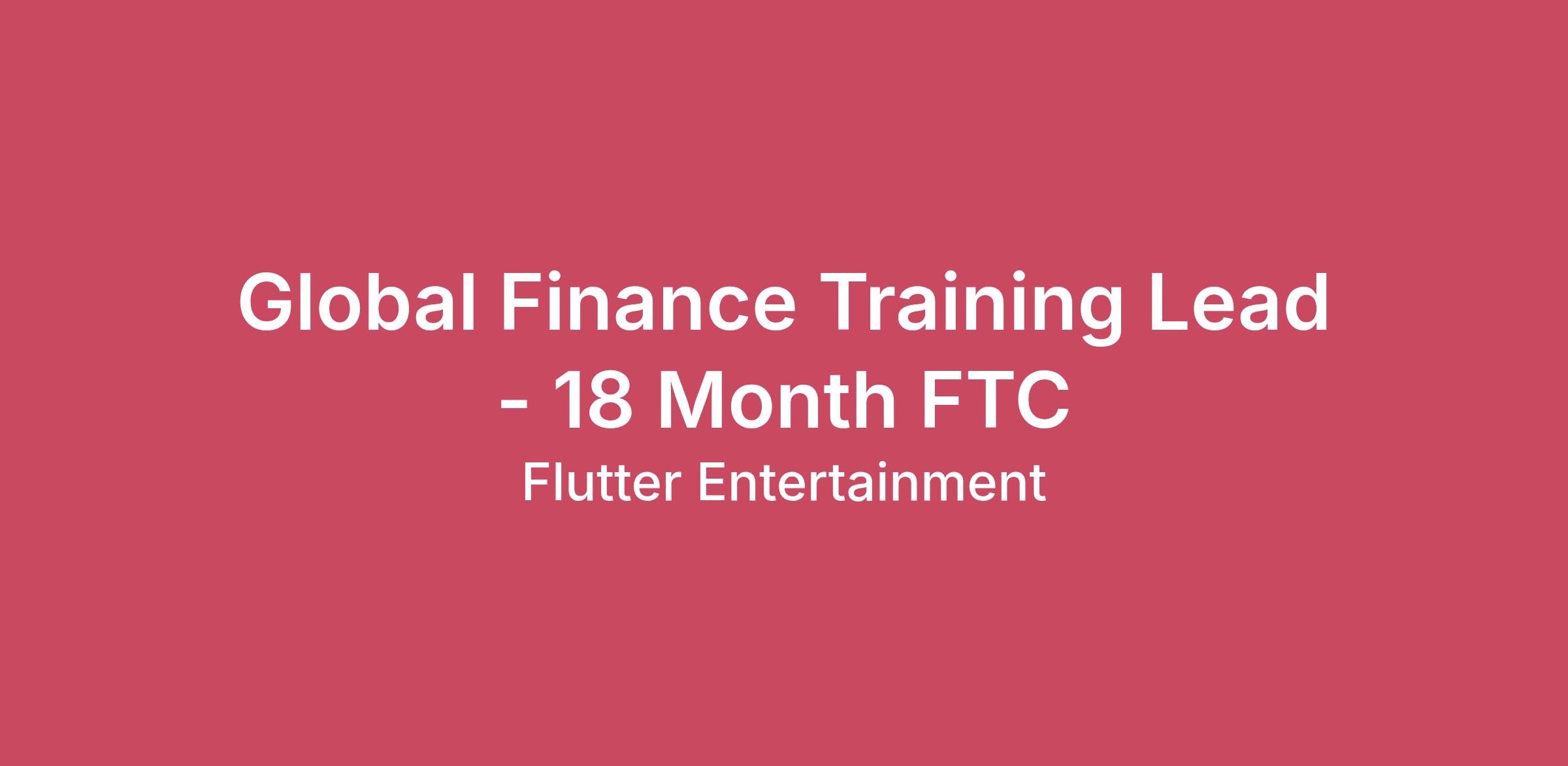 Global Finance Training Lead - 18 Month FTC