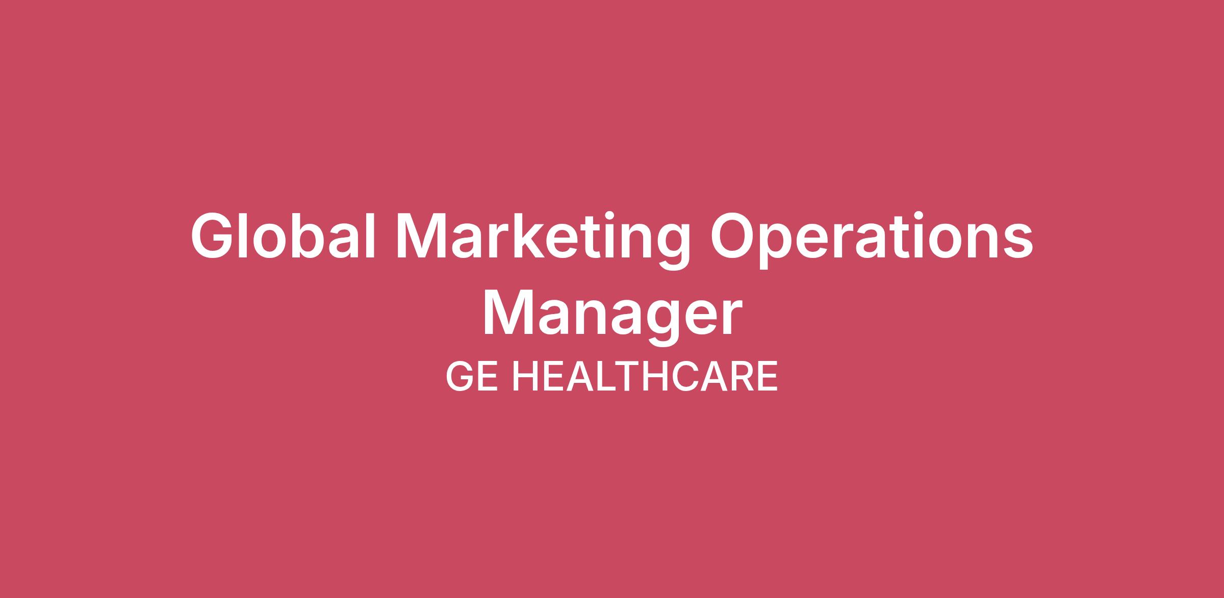 Job Description SummaryThe Global Marketing Operations Manager is a key member of the Global Marketing Operations team, supporting the execution, optimization, and governance of core marketing systems, processes, and programs. This role helps ensure operational excellence across global campaigns, maintains critical Martech tools, and enables best-in-class marketing execution across the Imaging portfolio.GE HealthCare is a leading global medical technology and digital solutions innovator. Our purpose is to create a world where healthcare has no limits. Unlock your ambition, turn ideas into world-changing realities, and join an organization where every voice makes a difference, and every difference builds a healthier world.Job DescriptionMarketing Systems & Operations SupportAssist in the day-to-day management and optimization of the marketing technology ecosystem (SFDC, Marketo, Showpad, Adobe Experience Cloud).Support the administration of Marketo programs, campaign workflows, list management, and reporting.Coordinate the LMR review process to ensure marketing assets meet compliance, branding, and regulatory standards.Monitor and track marketing asset performance, helping maintain governance and ensuring accurate metadata and library structure.Support PO processing, vendor onboarding tasks, and documentation related to KOL governance and compliance.Assist in piloting and documenting the use of AI-enabled marketing tools.Support note taking, follow-up’s of critical meetings and organize meetings that help co-ordinate critical marketing activities and operationsIntegrated Campaign ExecutionSupport creative development workflows and help manage the execution of global Imaging campaigns.Coordinate “always-on” programs such as email nurtures, webinars, and digital marketing activities.Provide logistical and project support for KOL and Thought Leader advocacy boards and events.Marketing Excellence & EnablementAssist with internal Imaging communications, content preparation, and distribution coordination.Support planning and logistics for the annual global marketing summit.Help maintain training materials and assist with organizing training sessions.Team Operations & CollaborationContribute to KPI tracking, documentation, and reporting.Support budget tracking activities, including spend documentation and vendor estimates.Collaborate with cross-functional teams, gathering feedback and helping drive process improvements.Qualifications3–5 years of experience in marketing operations, digital marketing, or integrated marketing roles.Working knowledge of key marketing platforms preferred.Strong organizational and project management skills.Experience supporting omni-channel campaign execution.Detail-oriented with analytical and reporting capabilities.Strong communication and collaboration skills.Interest in learning new tools, systems, and AI-driven marketing capabilities.Key AttributesProcess-oriented and organized.Curious, proactive, and eager to learn.Team-oriented with strong interpersonal skills.Adaptable and comfortable in a dynamic environment.Execution-focused mindset.We expect all employees to live and breathe our behaviors: to act with humility and build trust; lead with transparency; deliver with focus, and drive ownership –always with unyielding integrity.Our total rewards are designed to unlock your ambition by giving you the boost and flexibility you need to turn your ideas into world-changing realities. Our salary and benefits are everything you’d expect from an organization with global strength and scale, and you’ll be surrounded by career opportunities in a culture that fosters care, collaboration and support. GE HealthCare offers a great work environment, professional development, challenging careers, and competitive compensation. GE HealthCare is an Equal Opportunity Employer. Employment decisions are made without regard to race, color, religion, national or ethnic origin, sex, sexual orientation, gender identity or expression, age, disability, protected veteran status or other characteristics protected by law.GE HealthCare will only employ those who are legally authorized to work in the United States for this opening. Any offer of employment is conditioned upon the successful completion of a drug screen (as applicable).While GE HealthCare does not currently require U.S. employees to be vaccinated against COVID-19, some GE HealthCare customers have vaccination mandates that may apply to certain GE HealthCare employees.We will not sponsor individuals for employment visas, now or in the future, for this job opening. For U.S. based positions only, the pay range for this position is $108,000.00-$162,000.00 Annual. It is not typical for an individual to be hired at or near the top of the pay range and compensation decisions are dependent on the facts and circumstances of each case. The specific compensation offered to a candidate may be influenced by a variety of factors including skills, qualifications, experience and location. In addition, this position may also be eligible to earn performance based incentive compensation, which may include cash bonus(es) and/or long term incentives (LTI). GE HealthCare offers a competitive benefits package, including not but limited to medical, dental, vision, paid time off, a 401(k) plan with employee and company contribution opportunities, life, disability, and accident insurance, and tuition reimbursement.Additional InformationGE HealthCare offers a great work environment, professional development, challenging careers, and competitive compensation. GE HealthCare is an Equal Opportunity Employer. Employment decisions are made without regard to race, color, religion, national or ethnic origin, sex, sexual orientation, gender identity or expression, age, disability, protected veteran status or other characteristics protected by law.GE HealthCare will only employ those who are legally authorized to work in the United States for this openi