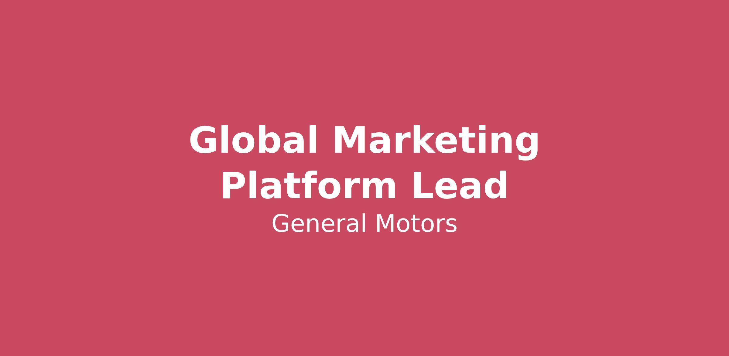 Job DescriptionGM is hiring a Global Marketing Platform Lead. This role sits at the intersection of global marketing processes, business requirements and technology, helping product build the tools our marketers need to create compelling campaigns and generative distinctive assets. You will leverage best-practices in tool adoption, taxonomy, training & adoption of MarTech tools (Adobe’s Experience Platform). You will leverage project management and collaboration skills, working cross functionally with teams like product, privacy, and agency partners to prioritize business requirements influencing product roadmaps. You will partner with key business stakeholders building data repository requirements to fuel workflows (i.e. agentic AI agents, knowledge base, etc.) This role requires self-starter, with an understanding of marketing technology and a proven track record promoting and driving business operations and last mile integrations across marketing channels (i.e. CRM, Web, Social, Media). Key Responsibilities include: Adobe’s Experience Platform Business & Process Operations: partner with GM Product driving process strategy for product roadmap execution. Leveraging data to determine experience priorities. Training & Tool Adoption: across global marketing, global agencies and key business stakeholders (i.e. GM Legal) Content Supply Chain (CSC) Support: support development of an end-to-end marketing process roadmap, spanning discovery through onboarding and launch. Attribute & taxonomy governance: implement taxonomy and proper tagging to measure asset traceability. Overseeing system governance to ensure tools are adopted and implemented responsibly Maintain Marketing Capability: embed core processes within the GM Marketing Way (Way2Grow) framework Universal Process Development & Improvement: campaign development process, customer journey, channel activation placemats, global brand planning, activation & optimization Agentic AI Platform: lead business requirements for AI briefing agent Sprint planning: connective tissue between business, product and engineering to determine user needs and UAT testing Training & platform adoption: socialization, rollout and change management across global marketing, agency partners and key business stakeholders Agent integration: connect strategy agents across hundreds of agentic AI platform agents Measurement Framework: determine successful tool adoption, governance and taxonomy adherence. Required Qualifications: Bachelor’s degree required. Preferred in Marketing, Software Engineering or related field. 5+ years of experience hands-on experience with campaign management, marketing communication platforms like Adobe, Salesforce. Demonstrated ability to manage projects with multiple moving parts across departments and regions. Knowledge of marketing activation strategies and approaches. Understanding of marketing skills, with experience in developing strategic frameworks. Proven experience succeeding in complex, matrix and cross-functional projects. Ability to deliver large scale initiatives in a fast-paced environment with high levels of complexity and ambiguity Preferred Qualifications: Proficiency with Adobe Experience Platform, including Workfront, AEM Assets (DAM), and related Adobe marketing technologies. Experience administering or governing Digital Asset Management (DAM) platforms such as Aprimo. Defined and implemented enterprise marketing taxonomy and metadata frameworks. Supported AI-enabled marketing workflows or automation initiatives. Partnered with Product and Engineering teams to translate business process requirements into platform capabilities. Designed and documented end-to-end marketing workflows across intake, planning, production, activation, and measurement. Skills: Proficiency in process mapping methodologies, user persona development, and operating model design. Ability to translate business requirements into scalable system and data frameworks. Strong capability in process standardization, governance, and change enablement across global organizations. Innovative thinking to approach challenges from multiple fronts, and ability to think outside the box. Ability to inspire, influence and collaborate across a wide range of stakeholders, working across cultures to support global initiatives. Demonstrated organizational skills, ability to prioritize tasks and manage time. efficiently while maintaining attention to detail. Excellent written, presentation and oral communication skills. Bias towards action and enjoys working in a fast paced, dynamic environment. Communicate complex subjects in a simple and straightforward way. Skilled problem solver, who utilizes data and experience to identify problems and solutions. Flexibility to adapt to changing needs, with a proactive approach to problem-solving and improving internal processes. Comfort with ambiguity and ability to shift gears comfortably while being an agent for change. Compensation:The compensation information is a good faith estimate only. It is based on what a successful applicant might be paid in accordance with applicable state laws.The actual base salary a successful candidate will be offered within this range will vary based on factors relevant to the position, as well as geography of the selected candidate.The salary range for this role is $105,600 - $140,700. The actual base salary a successful candidate will be offered within this range will vary based on factors relevant to the position.Bonus Potential: An incentive pay program offers payouts based on company performance, job level, and individual performance.Benefits: GM offers a variety of health and wellbeing benefit programs. Benefit options include medical, dental, vision, Health Savings Account, Flexible Spending Accounts, retirement savings plan, sickness and accident benefits, life insurance, paid vacation & holidays, tuition assistance programs, employee assistance program, GM vehicle discounts and more.#LI