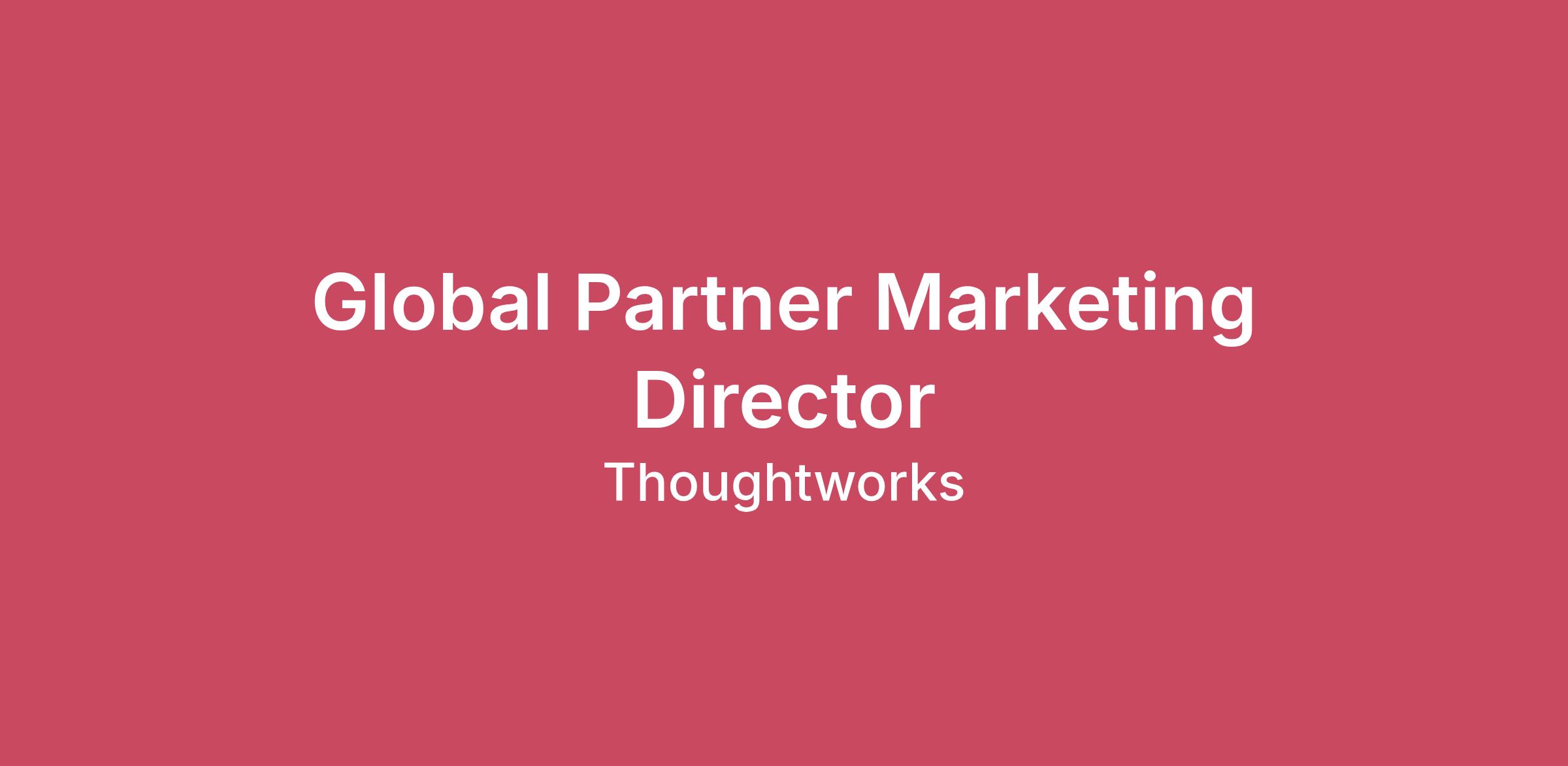 The Director of Partner Marketing is a global leadership role responsible for shaping, scaling, and operationalizing Thoughtworks’ partner marketing strategy across hyperscalers, ISVs and emerging technology alliances. Reporting directly to the CMO, this role leads a team of global partner marketing specialists and serves as the strategic orchestrator between Thoughtworks, its strongest ecosystem partners, and the broader GTM organization. This leader defines global frameworks, value propositions, co-marketing strategies, and MDF investment logic - ensuring partner marketing programs are aligned to Thoughtworks’ growth priorities, consistently activated across regions, and generating measurable pipeline and influence. Job responsibilities Global Partner Marketing Strategy & Leadership:Define and lead Thoughtworks’ global partner marketing strategy across hyperscalers, ISVs and strategic alliances. Translate enterprise growth objectives into clear partner marketing priorities, investment strategies, and focus areas. Govern global partner positioning, messaging and narratives in collaboration with Service Line Marketing. Drive long-term strategic planning with partner ecosystem leadership, ensuring alignment with commercial goals. Develop relationships with marketing and GTM leaders in our partners. Develop key internal relationships in partners, service lines, marketing, sales. Lead embedding AI and data-driven approach in the partner GTM. Joint Value Propositions, Messaging & GTM:Develop and govern joint value propositions and messaging frameworks for top-tier partners (AWS, Azure, GCP, key ISVs). Ensure partner propositions are embedded in global campaigns, portfolio narratives, service line positioning, and field enablement. Collaborate with partner ecosystem leadership to evolve partnership GTM models and co-develop high-impact joint offerings. Co-Marketing & Campaigns:Lead global co-marketing strategy, annual plans, and priority partner communications. Translate partner priorities into scalable campaign toolkits used by regions to drive demand, influence, and deal acceleration. Oversee the creation of co-branded assets, sales enablement materials, executive story packs, and sector/vertical messaging. Partner with global campaigns, content, digital, paid media, and social to amplify partner-driven stories. Ecosystem Events & Activation:Define marketing strategy, messaging, and priority offerings for major partner flagship events (e.g., AWS re:Invent). Co-lead event execution with regional teams and ecosystem leadership. Support regional activation programs that deepen partner seller engagement, expand reach, and drive pipeline. Partner Marketing Operations & MDF Strategy:Maximise the MDF budget. Own the global MDF/PFF strategy, including allocation, governance, and ROI measurement. Oversee Partner Marketing Operations to ensure seamless execution, performance tracking, and reporting. Implement consistent global processes for MDF planning, usage, and reporting across partner portfolios. Cross-Functional Alignment & Stakeholder Leadership:Coordinate with Service Line, Campaigns, Field Marketing, Content, Digital, and PR/AR teams to ensure partner marketing is integrated across all GTM activities. Serve as the primary global marketing liaison to partner organizations, building strong relationships with global partner marketing contacts. Partner with regional marketing teams to support local activation needs, gather feedback, and ensure global alignment. Maintain alignment with global ecosystem strategy, delivery, and sales leadership. Measurement & Reporting:Lead global partner performance reporting, dashboards, and insight readouts. Provide visibility to CMO and partner ecosystem leadership on partner-sourced and partner-influenced pipeline, MDF ROI, and campaign performance. Ensure regional data and results roll up into global reporting consistently and accurately. Team Leadership:Lead and mentor four direct reports covering AWS, Other Hyperscalers, ISVs, and Partner Marketing Operations. Build capability and collaboration across global and regional marketing teams. Manage agency support and vendor relationships as needed to scale partner marketing capacity. Job qualifications Technical Skills 10–15 years in B2B marketing, including 7-10 years leading partner marketing programs, preferably within an IT services or consulting organization - Required. Experience working directly at a hyperscaler (AWS, GCP, Microsoft), an ISV (Databricks, Snowflake, MongoDB), or an AI model/compute company (Nvidia, Anthropic) - Required. Proven experience defining and scaling global partner marketing strategy, frameworks, and activation models. Strong understanding of enterprise ecosystems, marketplace models, MDF/PFF governance, and co-marketing best practices. Demonstrated success working with AWS, Azure, GCP or major ISVs in global co-marketing and GTM programs. Exceptional communication, relationship-building, and cross-functional leadership skills. Strong analytical, planning, and program management capability. Experience influencing senior stakeholders across marketing, sales, ecosystem, and delivery teams. Experience scaling global partner programs across regions. Professional Skills Strategic thinker with excellent partner and stakeholder instincts. Results-driven, pragmatic, and able to operate in a fast-moving, ambiguous environment. Collaborative leader who inspires cross-functional alignment. Strong pattern recognition, able to simplify complexity and drive clarity. Creative, resourceful, and able to balance long-term strategy with near-term execution. Other things to know Learning & Development There is no one-size-fits-all career path at Thoughtworks: however you want to develop your career is entirely up to you. But we also balance autonomy with the strength of our cultivation culture. This means your career is supported by interactive tools, numerous development programs and teamma