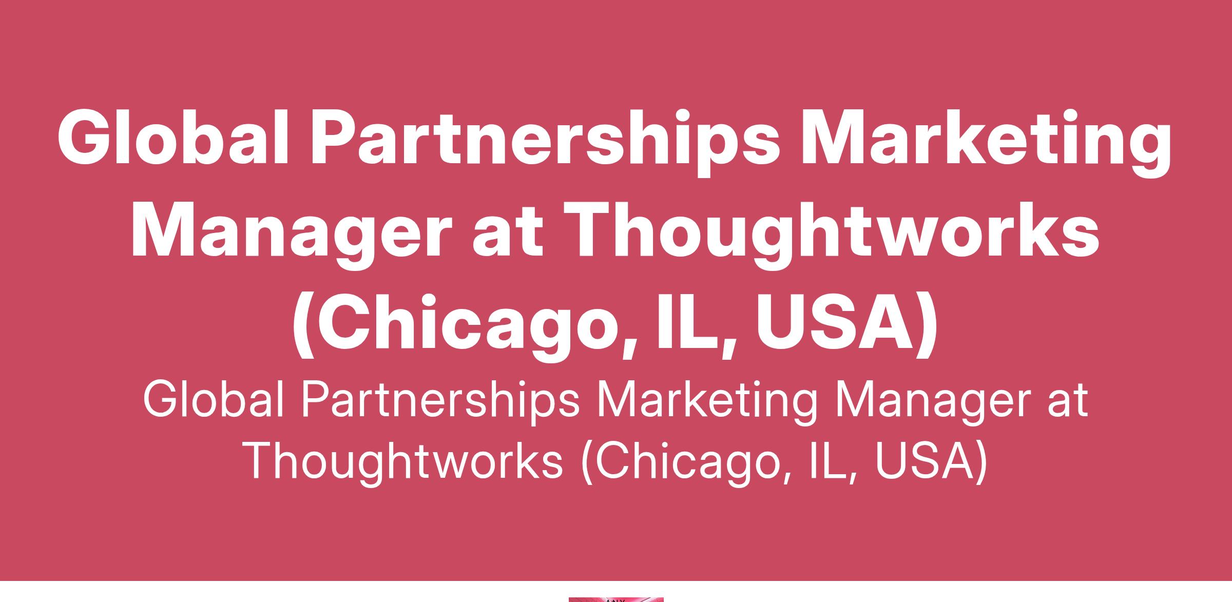 Global Partnerships Marketing Manager at Thoughtworks (Chicago, IL, USA)