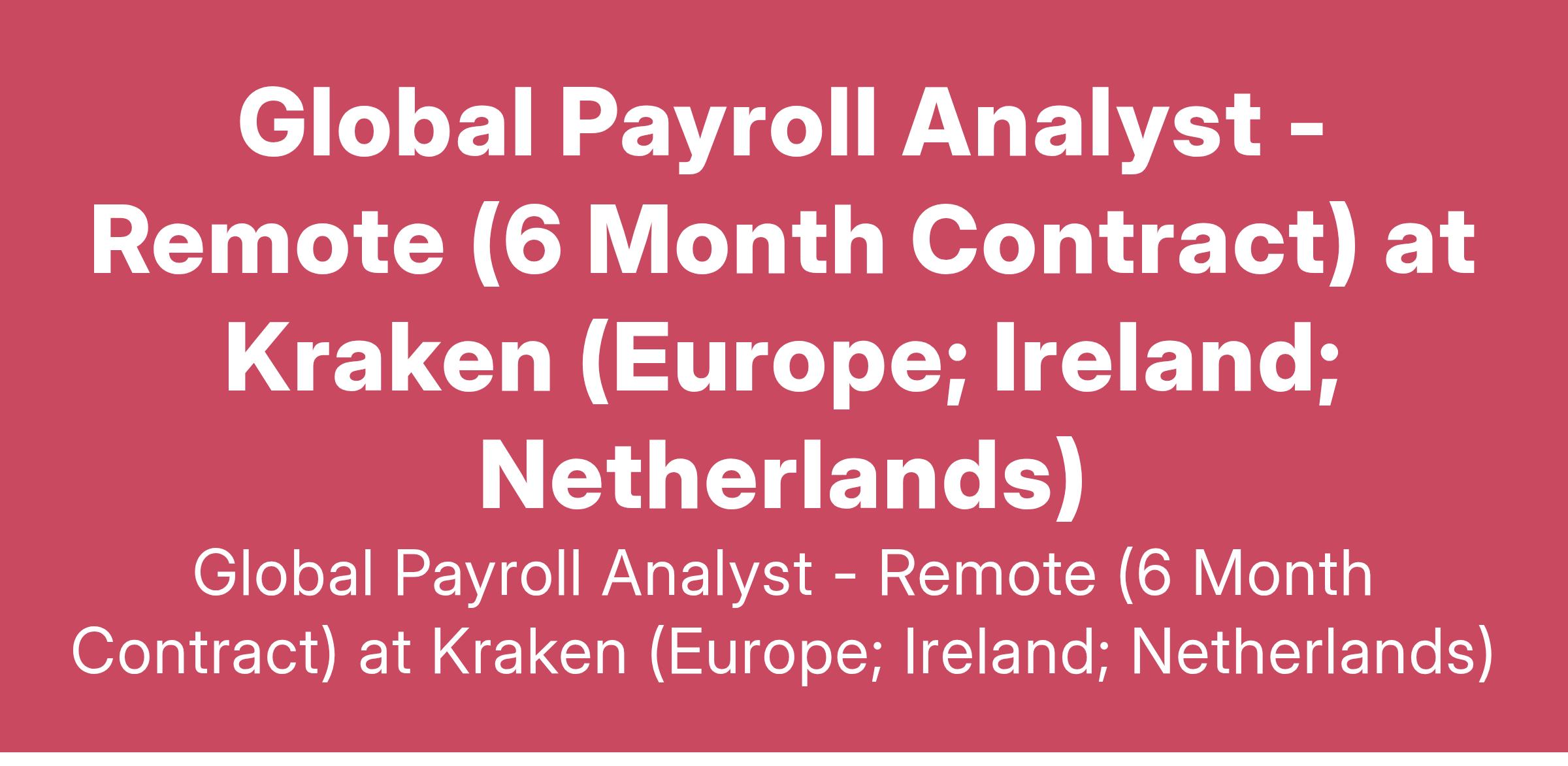 Global Payroll Analyst - Remote (6 Month Contract) at Kraken (Europe; Ireland; Netherlands)