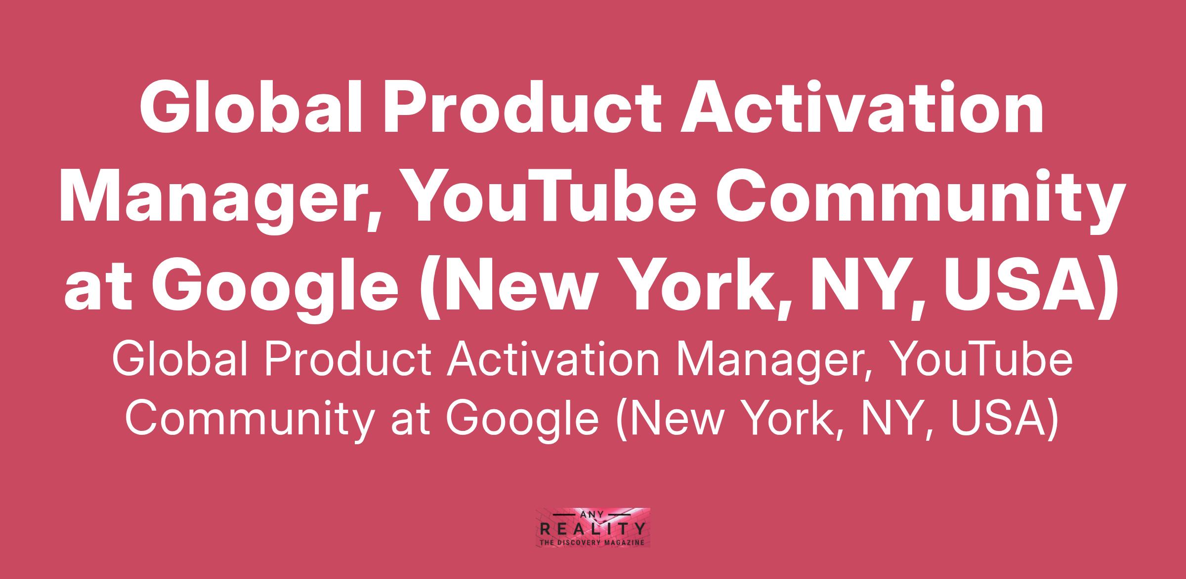 Global Product Activation Manager, YouTube Community at Google (New York, NY, USA)