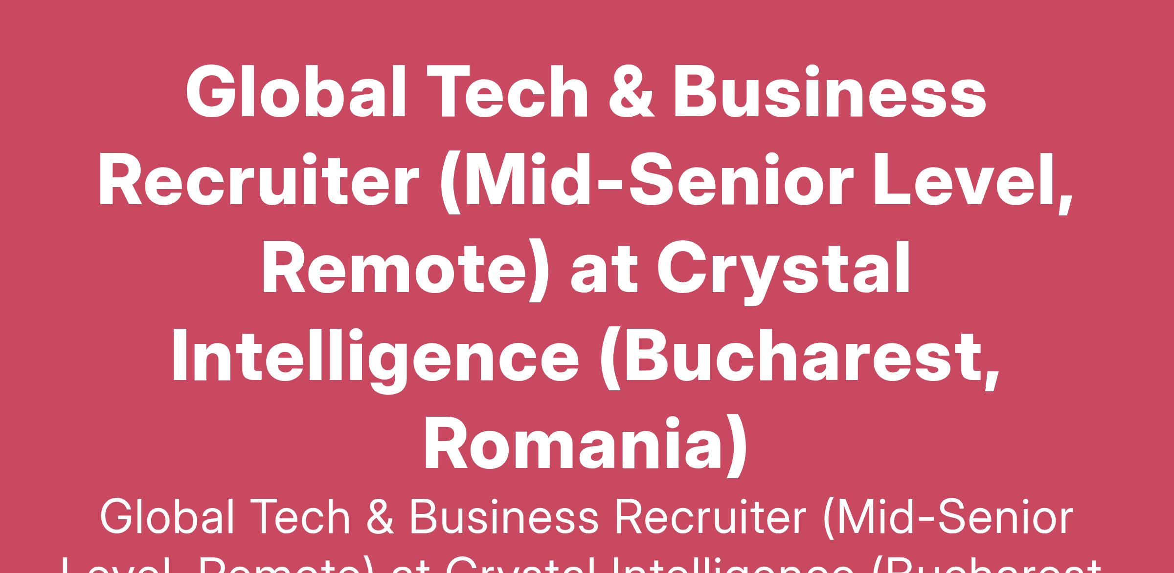 Global Tech & Business Recruiter (Mid-Senior Level, Remote) at Crystal Intelligence (Bucharest, Romania)