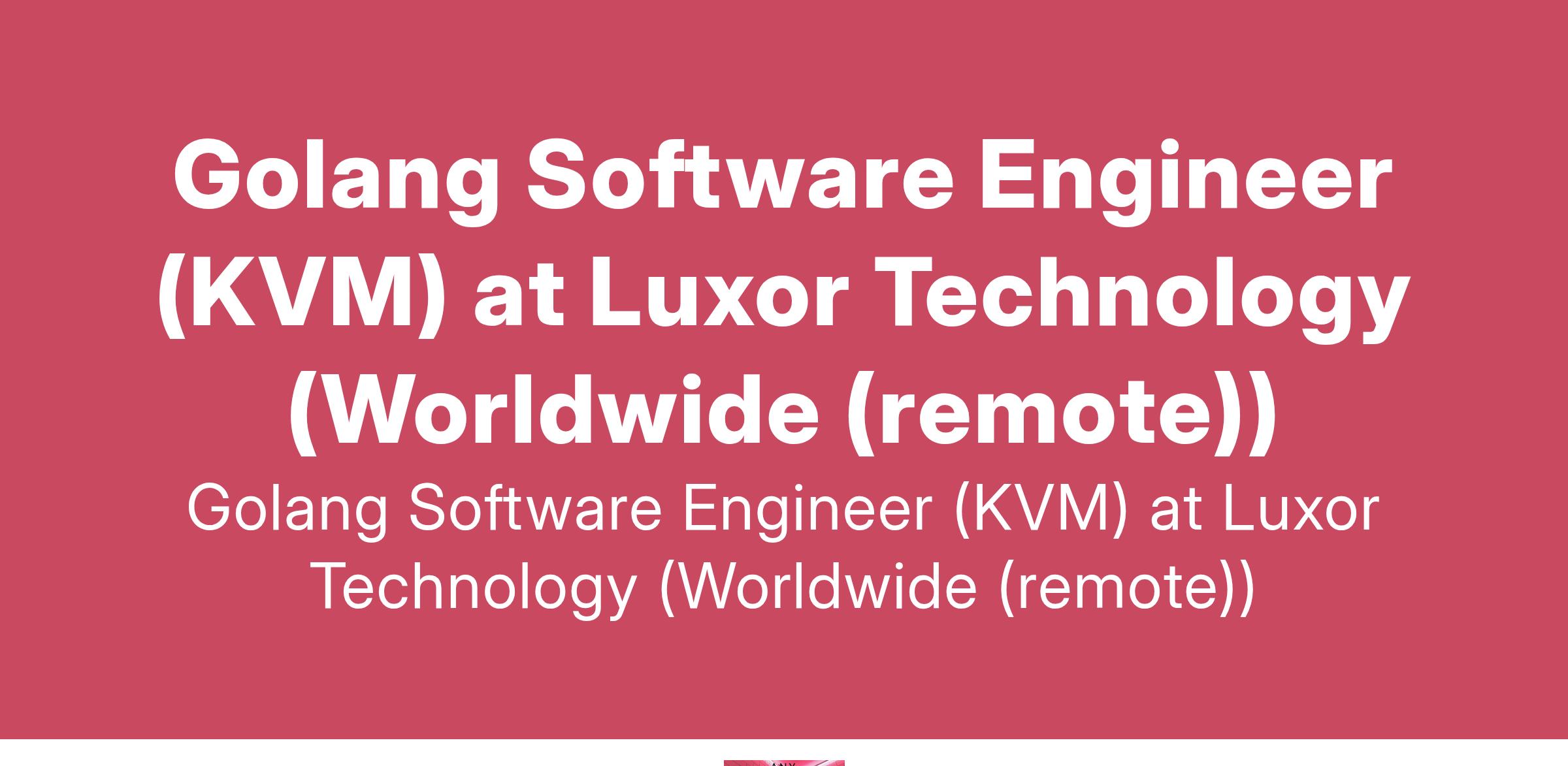 Golang Software Engineer (KVM) at Luxor Technology (Worldwide (remote))