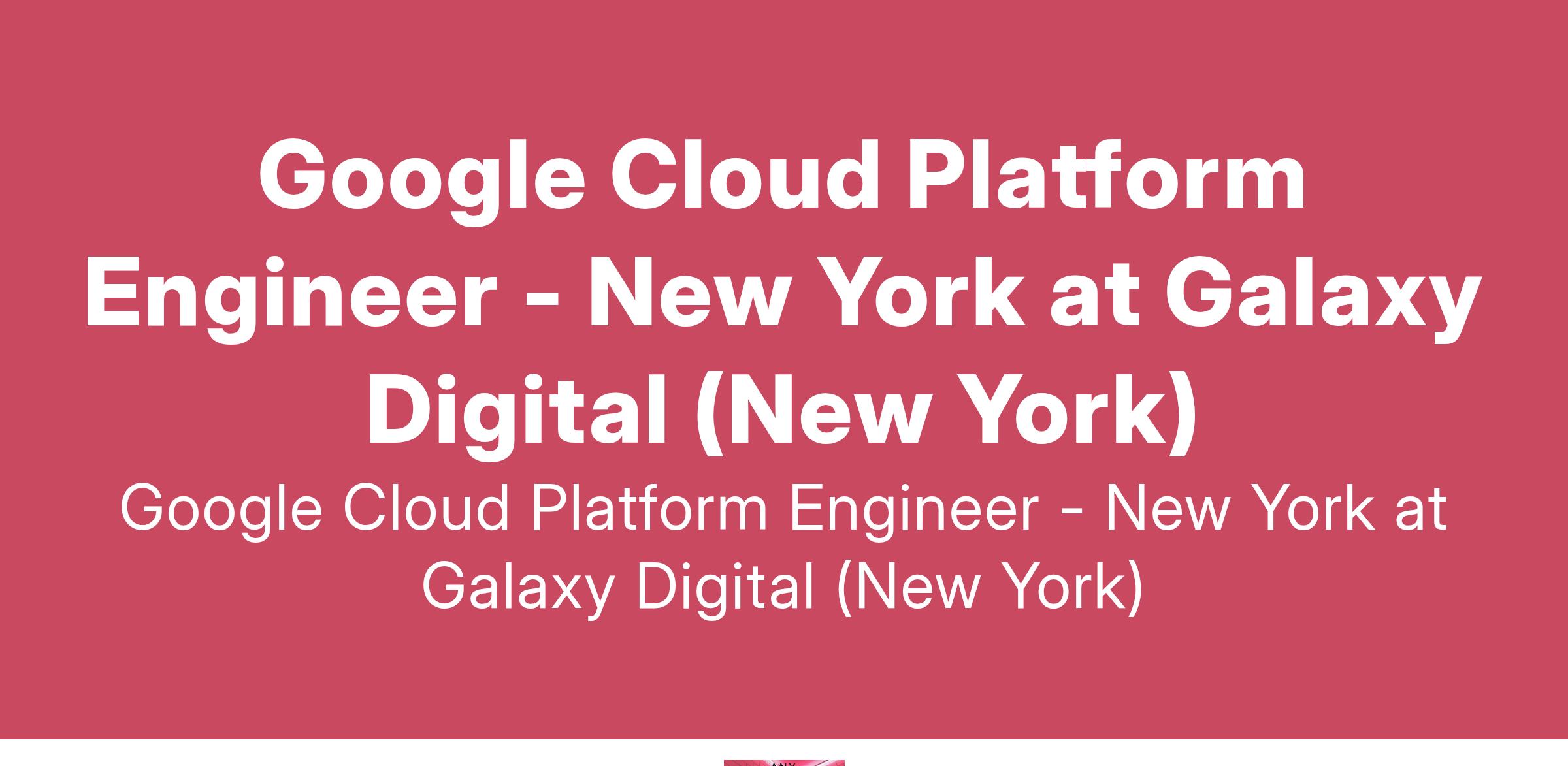 Google Cloud Platform Engineer - New York at Galaxy Digital (New York)