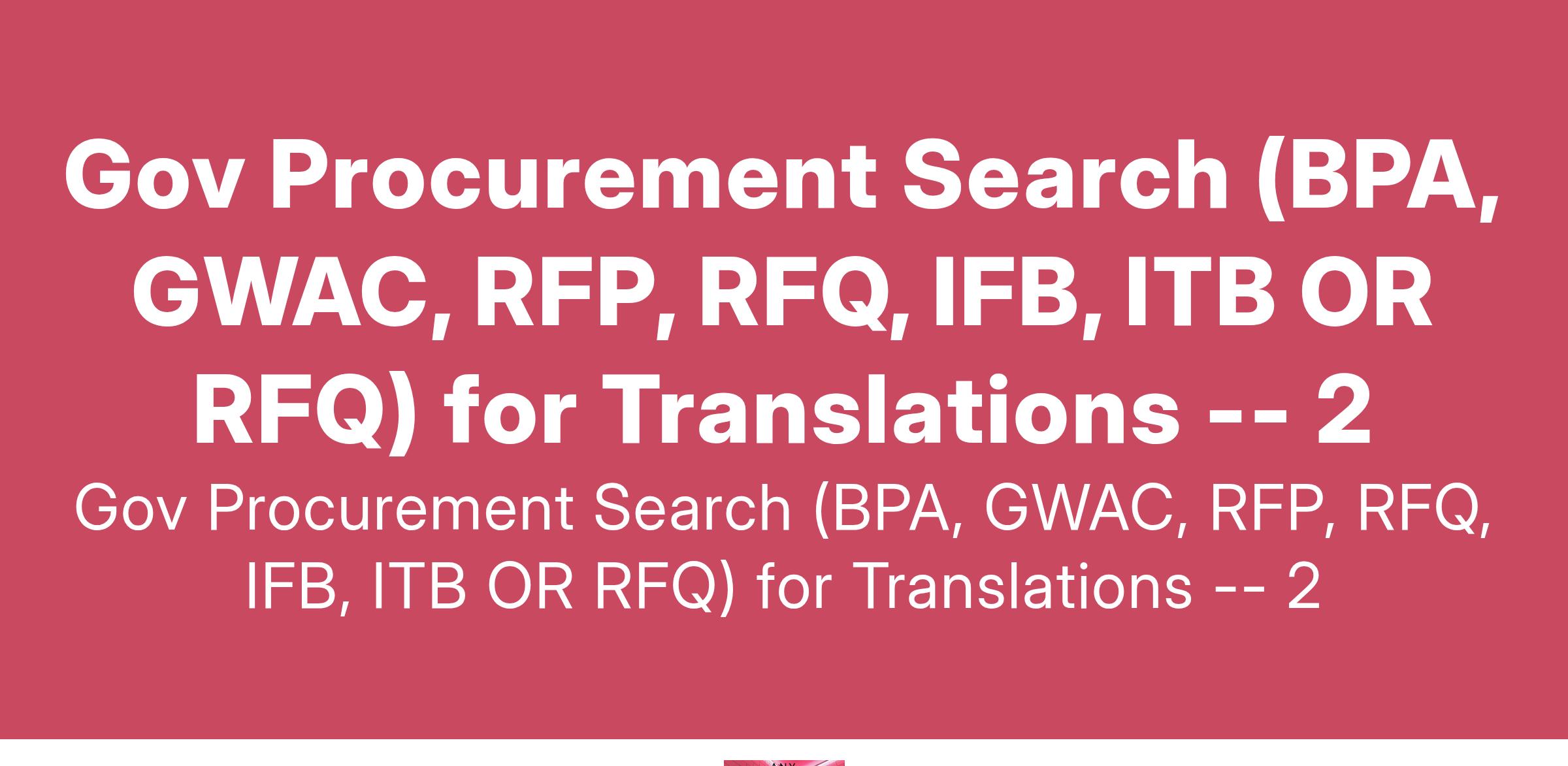 Gov Procurement Search (BPA, GWAC, RFP, RFQ, IFB, ITB OR RFQ) for Translations -- 2