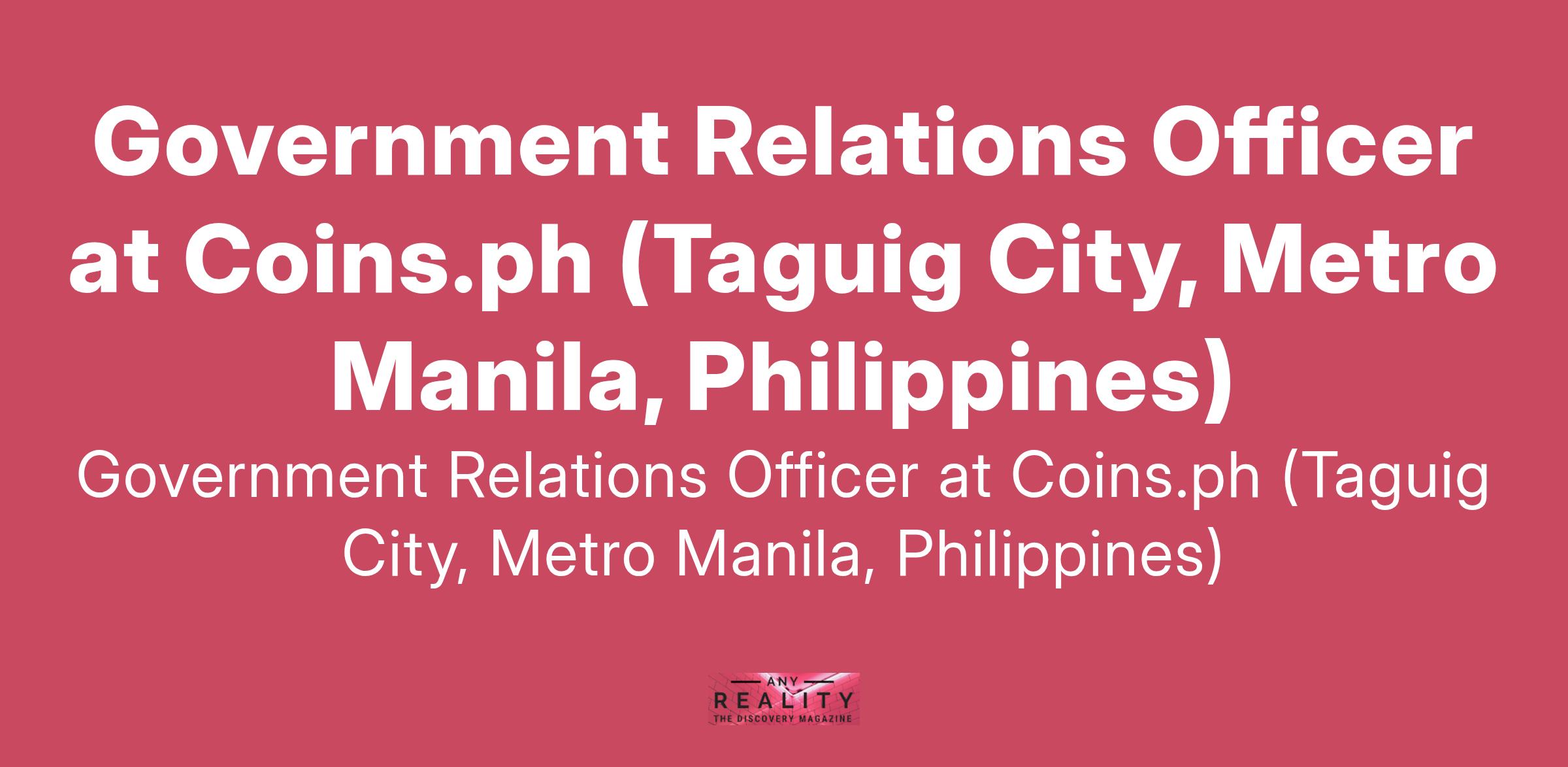 Government Relations Officer at Coins.ph (Taguig City, Metro Manila, Philippines)