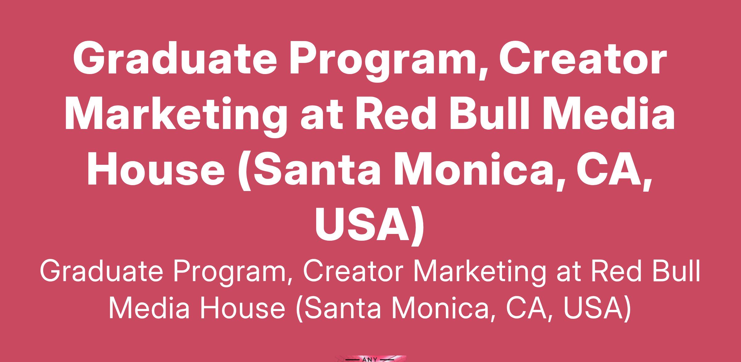 Graduate Program, Creator Marketing at Red Bull Media House (Santa Monica, CA, USA)