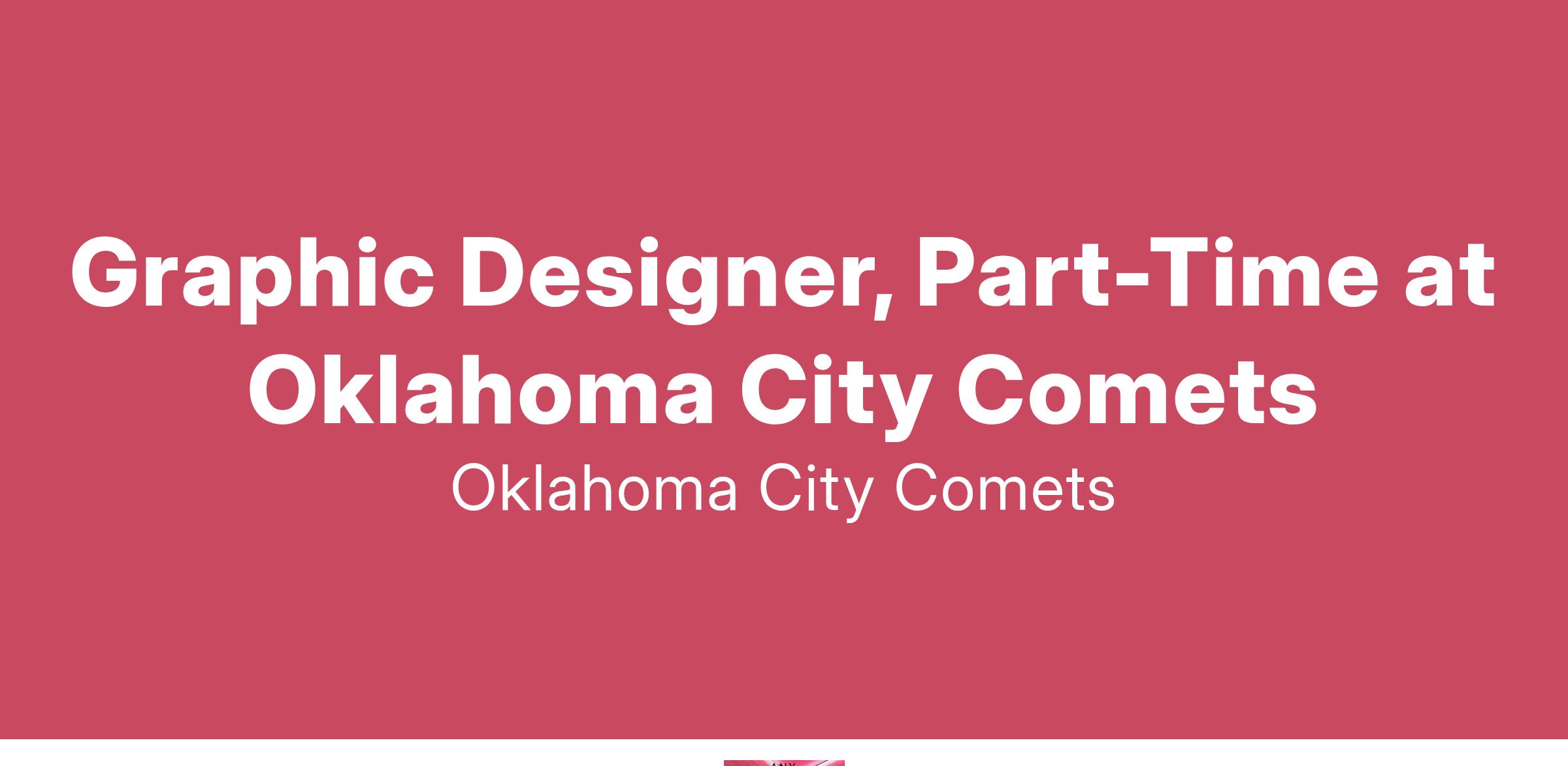 The Oklahoma City Comets are looking for a part-time graphic designer to work as a member of the marketing department. The Graphic Designer will assist with the creation of content to promote Comets games, as well as various year-round events at Chickasaw Bricktown Ballpark, located in the heart of the Bricktown entertainment district in downtown Oklahoma City.