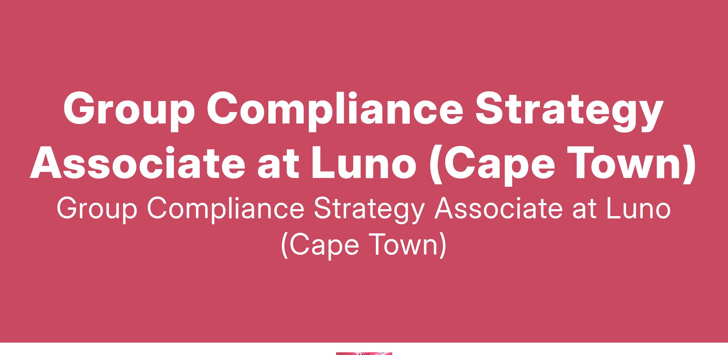Group Compliance Strategy Associate at Luno (Cape Town)