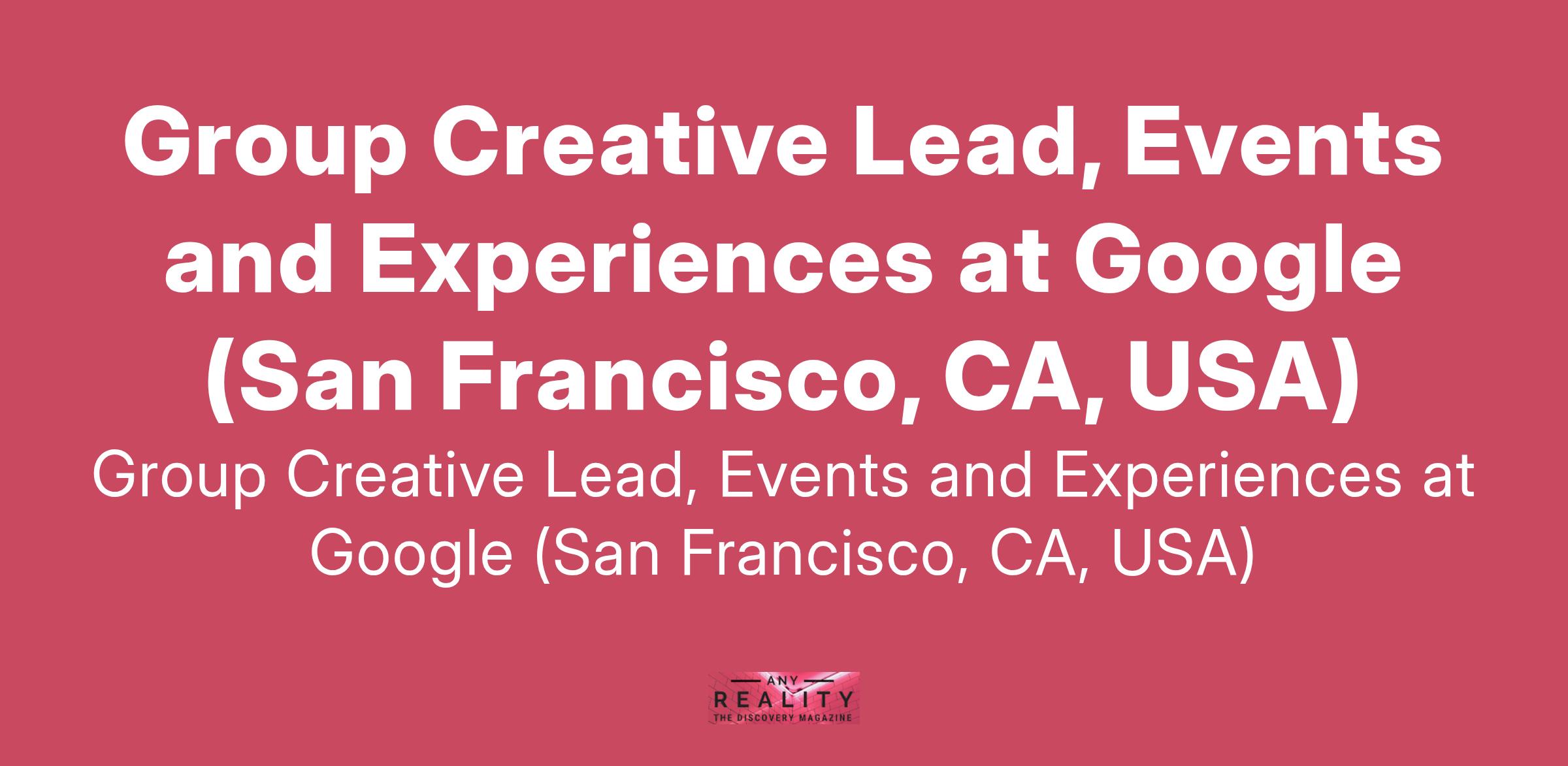Group Creative Lead, Events and Experiences at Google (San Francisco, CA, USA)