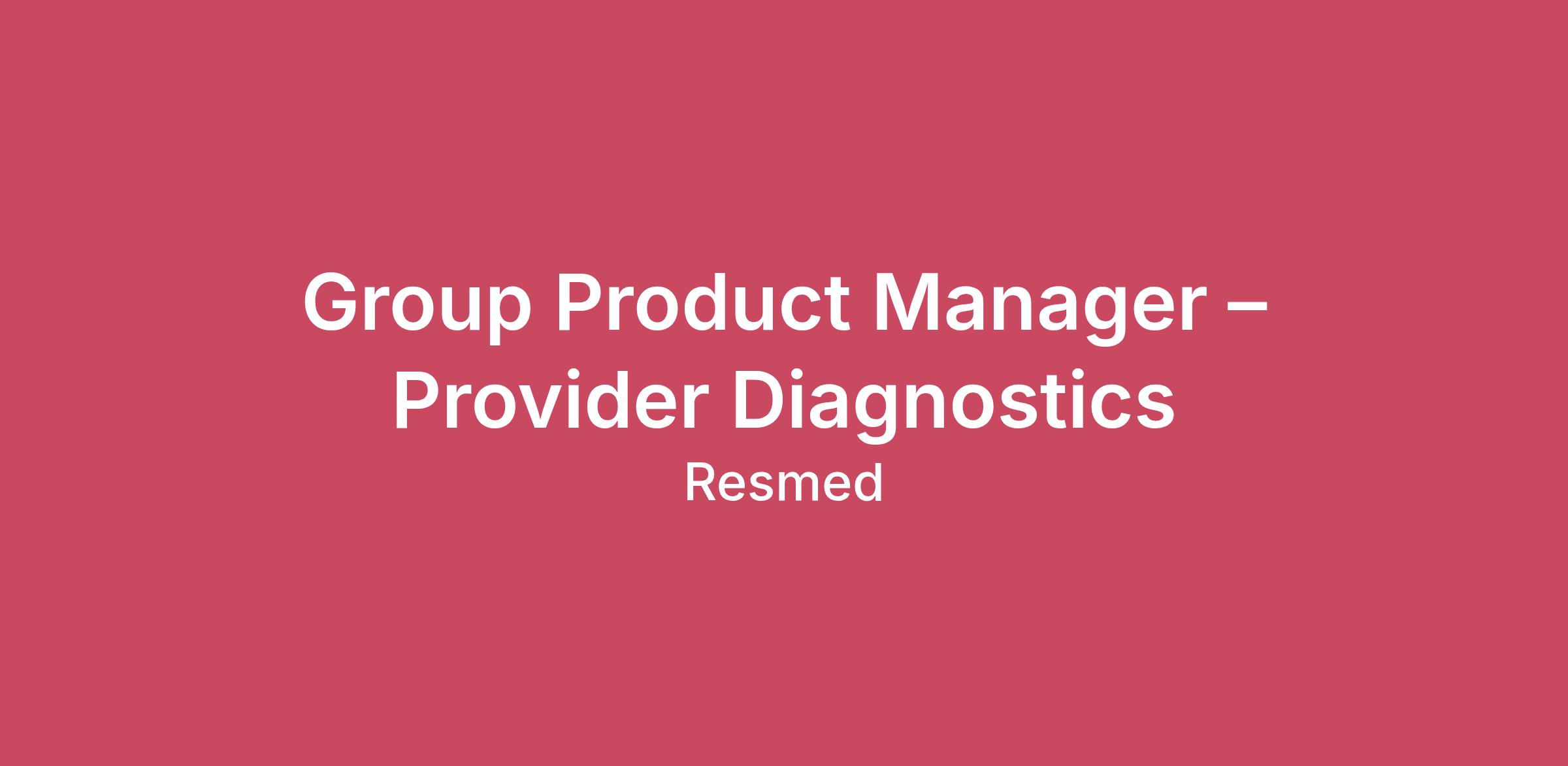 Group Product Manager – Provider DiagnosticsAs a senior member of the Provider Solutions Product Management team, you will shape the future of Somnoware’s Diagnostics platform—a device-agnostic ecosystem that enables sleep labs to manage studies, streamline scoring, and deliver results with greater efficiency and accuracy. You will lead the roadmap for core provider-facing workflows and manage a team of Product Managers who ensure the platform reliably supports a wide range of diagnostic devices and clinical use cases. You will partner closely with engineering, UX, quality, regulatory, and commercial teams to deliver scalable, compliant solutions that improve operational throughput and strengthen clinical outcomes.This role is highly collaborative and focused on portfolio-level product leadership, people development, and cross-functional execution. The Head of Product owns top-level organizational strategy and senior leadership responsibilities; as Group PM, you will focus on driving product direction, managing PMs, and ensuring Somnoware Diagnostics meets its goals.Let’s talk about ResponsibilitiesProduct Strategy: Collaborate with the head of product on strategy and roadmap for Somnoware Diagnostics core workflows. Define success metrics and ensure PMs deliver measurable impact.People Leadership & Development: Manage, coach, and develop 2–4 Product Managers. Set clear expectations for high-quality opportunity exploration, discovery, and requirement definition. Ensure PMs do user research, solution validation, and proactive communication with stakeholders. Run regular 1:1s, performance reviews, and career development planning.Customer & Market Insight: Consolidate customer and commercial input to identify product and cross-portfolio opportunities. Validate hypotheses through structured discovery and in-market learning that is supported by subjective and objective evidence.Cross-Functional Alignment & Communication: Ensure roadmaps are sequenced, dependencies resolved, and cross-team collaboration is strong across engineering, UX, QA, clinical, regulatory, and integration teams. Communicate priorities, tradeoffs, risks, and decisions clearly to stakeholders. Build credibility through consistent delivery and clear, data-driven rationale.Let’s talk about Qualifications and Experience7–8 years of relevant experience in product management in SaaS or digital health; experience in diagnostics, interoperability, clinical workflows, or regulated healthcare is strongly preferred.Proven people manager with experience leading and developing PMs (2–4 direct reports).Strong background in defining roadmaps, prioritization frameworks, and measurable outcomes.Excellent communicator and cross-functional collaborator.Must be based in US Pacific Time (PT); San Diego strongly preferred.Join UsAt Resmed, we believe innovation starts with people. We value diversity of thought, agility, and imagination — and we know that building something meaningful takes leaders who are passionate, humble, and technically sharp.We are shaping the future at ResMed, and we recognize the need to build on and broaden our existing skills and continue to attract and retain the world’s best talent. We work hard to offer holistic benefits packages, provide flexible work arrangements, cultivate a workforce culture that allows employees to grow personally and professionally, and deliver competitive salaries to our team members. Employees scheduled to work 30 or more hours per week are eligible for benefits. This position qualifies for the following benefits package: comprehensive medical, vision, dental, and life, AD&D, short-term and long-term disability insurance, sleep care management, Health Savings Account (HSA), Flexible Spending Account (FSA), commuter benefits, 401(k), Employee Stock Purchase Plan (ESPP), Employee Assistance Program (EAP), and tuition assistance. Employees have Flexible Time Off (FTO), receive 11 paid holidays plus 3 floating days and are eligible for 14 weeks of primary caregiver or two weeks of secondary caregiver leave when welcoming new family members. Individual pay decisions are based on a variety of factors, such as the candidate’s geographic work location, relevant qualifications, work experience, and skills. At ResMed, it is not typical for an individual to be hired at or near the top of the range for their role and compensation decisions are dependent on the facts and circumstances of each case. A reasonable estimate of the current range for this position is: $146,000 - $183,000 - $220,000 USD.Joining us is more than saying “yes” to making the world a healthier place. It’s discovering a career that’s challenging, supportive and inspiring. Where a culture driven by excellence helps you not only meet your goals, but also create new ones. We focus on creating a diverse and inclusive culture, encouraging individual expression in the workplace and thrive on the innovative ideas this generates. If this sounds like the workplace for you, apply now! We commit to respond to every applicant.
