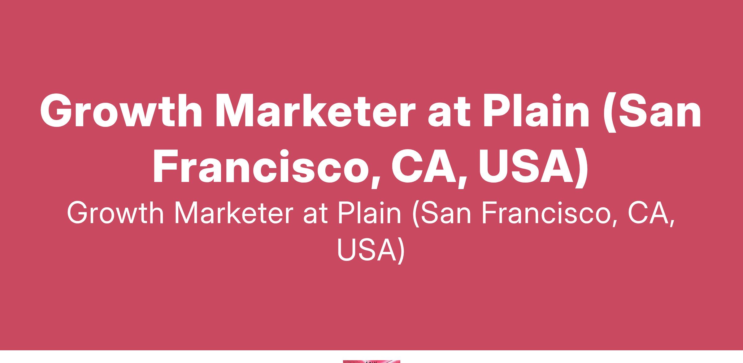Growth Marketer at Plain (San Francisco, CA, USA)