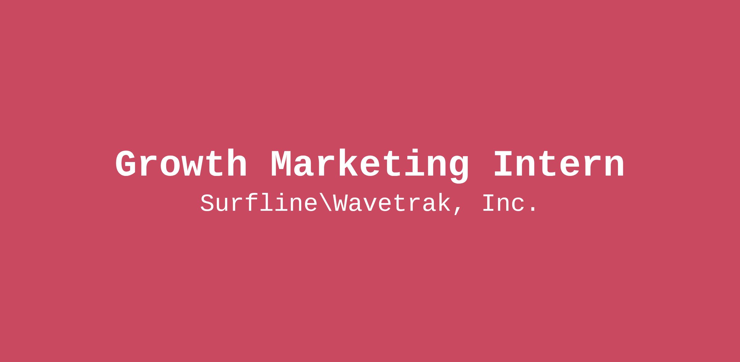 As a Growth Marketing Intern at Surfline, you will work with our team to help optimize our growth marketing channels. You will support the Growth team through executing marketing campaigns and providing data and analysis required to deliver a carefully curated and enhanced customer experience.Under Surfline’s “Work from Anywhere” policy, this position may be performed on a remote basis from any location within California.What You'll Do:Assist the Growth Marketing team in building and executing campaigns.Gather data and insights from our growth marketing channels (Email, Push Notifications, and In-Product Messages).Perform market research to identify new and innovative ways to optimize our growth marketing channels.Maintain and update the Growth Marketing messaging calendar.What You'll Learn:Analytics: How to interpret and leverage data to measure channel performance with analytics softwares.Campaign Strategy: Learn how a global marketing team develops and executes cross-channel marketing campaigns that support broader business initiatives.Campaign Execution: Learn how to build campaigns using email, push notifications, and in-product messages.Professional communication skills: Experience working on a large and collaborative team that spans across marketing, product, content, forecast, and more.What We're Looking For:Enthusiasm for the values and culture of SurflineCurrent college student pursuing a degree in business and/or marketing.Professional communication skills.Self-motivation, organization, attentive to details.Ability to independently prioritize, multi-task and meet deadlines.Strong analytical thinking and problem-solving skills. Ability to work well within a team and eager to take initiative. Ability to dream big and think outside of the box.You May Also Have:Previous experience in marketing, or other business verticals. Experience working in the surf/outdoor industry.A passion for surfing and the ocean.About Surfline Wavetrak: Millions of people around the world depend on Surfline Wavetrak’s products to enrich their experiences in and around the ocean. Since 1985, our company has connected people with the ocean. Starting with surfers and expanding to offshore cruisers, anglers and a myriad of other ocean enthusiasts, we’ve made it our mission to deliver peak maritime experiences. We provide those who work and play in the ocean with all the advanced tools, personalized insights and immersive content to make their lives better -- supplying them with the information they need to make smarter decisions, seek out new experiences and gain valuable knowledge. We are dedicated to bringing people together across the globe, and we champion and encourage those who bring different perspectives, ideas, and creativity. At Surfline Wavetrak, we recruit, employ, train, compensate, and promote regardless of race, religion, color, national origin, sex, disability, gender identity, gender expression, age, veteran status, and any other protected status. Privacy Notice for Employees and Job Applicants