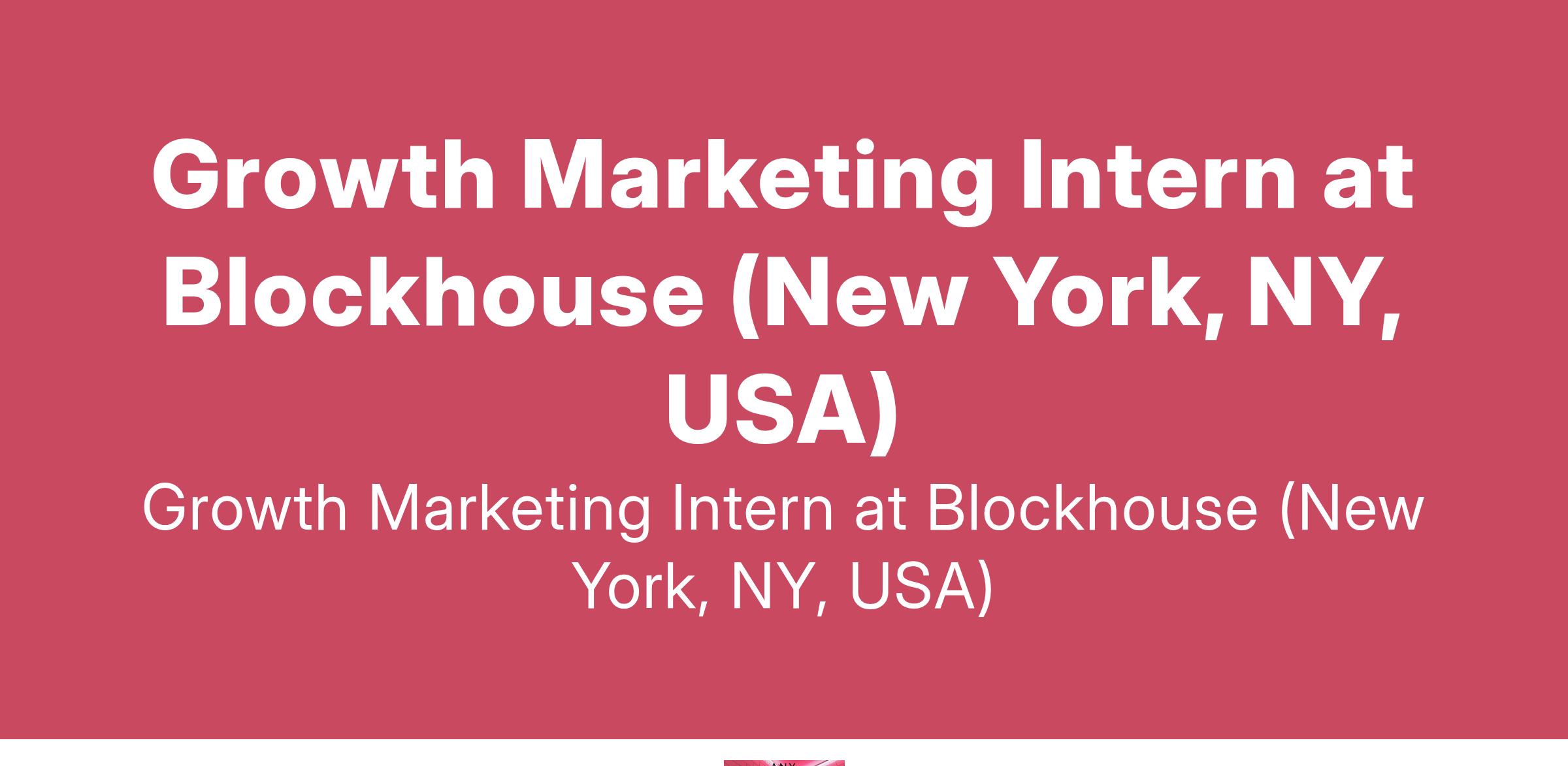 Growth Marketing Intern at Blockhouse (New York, NY, USA)