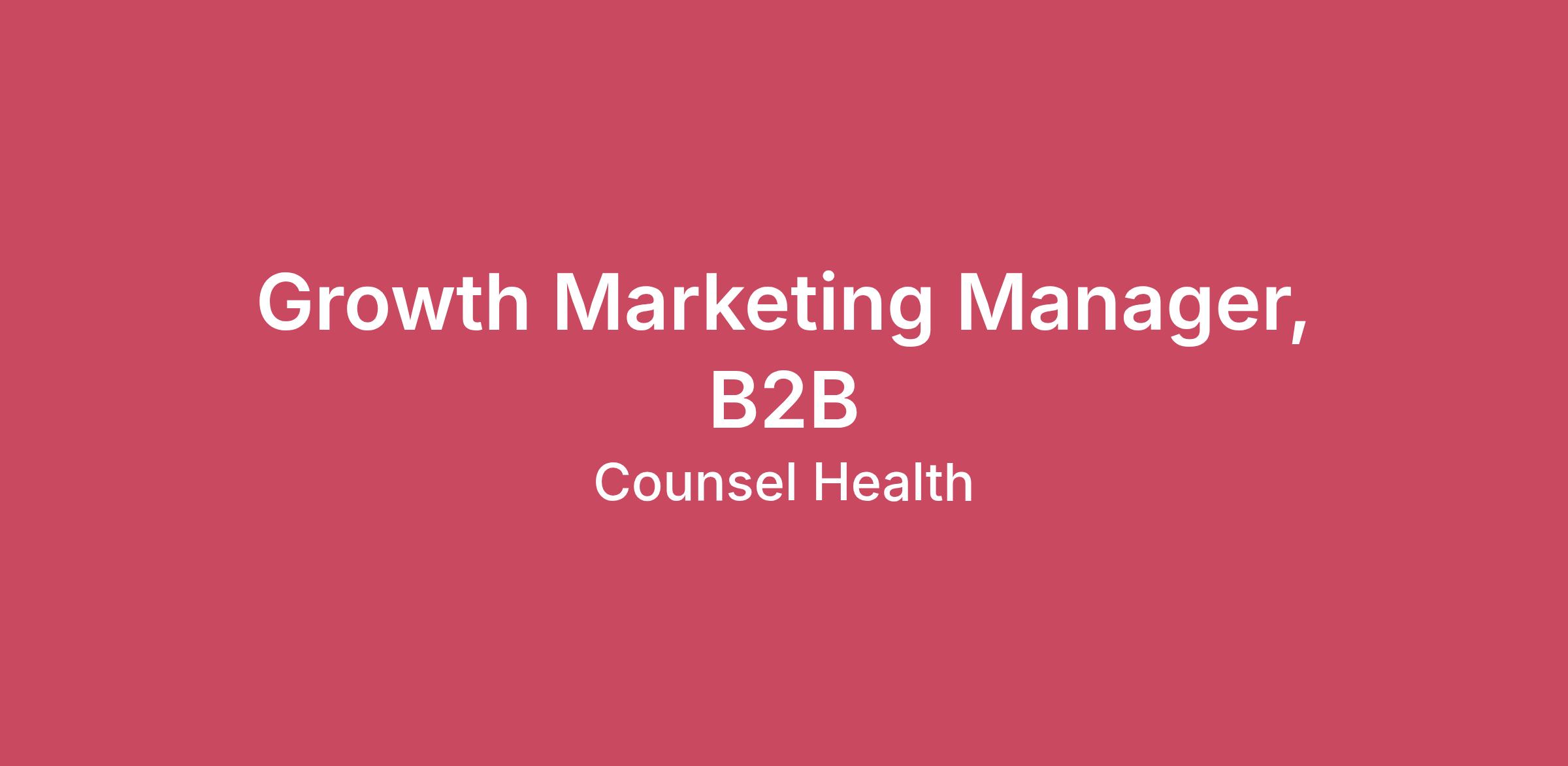 About the roleCounsel Health is seeking a high-caliber, analytically minded Growth Marketing Manager, B2B to help build and scale our enterprise growth engine. This role sits at the intersection of product marketing, content strategy, and performance marketing, and is designed for someone who thrives at translating complex healthcare technology into compelling narratives that drive measurable growth.You will partner closely with Sales, Clinical, AI, and Product teams to develop messaging, produce high-impact content, and design campaigns that shape how Counsel communicates its value to enterprise buyers.You will ownGrowth messaging and experimentation: Develop and continuously test messaging across campaigns, using performance data to refine how Counsel communicates its value.Content that powers distribution: Produce high-impact assets, including white papers and case studies, that fuel demand generation, outbound sales efforts, and brand awareness.Enterprise channel optimization: Own experimentation and optimization across key B2B growth channels, including LinkedIn Ads, outbound sales messaging, and media partner campaigns.What you’ll doGrowth campaign execution: Design and execute campaigns targeting enterprise buyers. You will run structured A/B tests across messaging, creative, and audience segments to continuously improve performance.Sales enablement content: Create assets that support enterprise sales conversations and outbound email campaigns.Thought leadership content: Partner with the commercial team to develop high-quality thought leadership assets that position Counsel as a leader in AI-enabled primary care.Channel optimization: Own day-to-day experimentation across LinkedIn Ads and other enterprise marketing channels, refining audience targeting, messaging, and creative to drive engagement and pipeline growth.Data-driven storytelling: Use product data, industry insights, and performance analytics to craft narratives that resonate with enterprise buyers and differentiate Counsel in a rapidly evolving market.What you’ll bringExperience: 5-7+ years of experience in B2B marketing across product marketing, growth marketing, content marketing, or demand generation, ideally within healthcare, digital health, or enterprise SaaS.Content craftsmanship: You have experience producing high-quality marketing and sales content and executive-level collateral.Narrative builder: You can take complex technical concepts and translate them into clear, compelling messaging that resonates with enterprise buyers.Analytical mindset: You are comfortable using data to guide experimentation and decision-making. You understand how to evaluate performance across campaigns, messaging tests, and growth channels.Channel fluency: You have hands-on experience running or optimizing B2B marketing channels such as LinkedIn Ads, outbound sales campaigns, or demand generation programs.Startup mentality: You thrive in fast-moving environments and are comfortable building processes, systems, and assets from scratch.Bonus points forAI product exposure: Experience marketing AI-powered or technically complex products, with the ability to translate technical capabilities into clear messaging.Content Marketing Experience: Experience owning the end-to-end production of long-form marketing assets, such as white papers, research reports, or case studies.Performance marketing exposure: Hands-on experience optimizing paid social or other performance channels within a B2B context.What we offerImpact: Be at the forefront and contribute to groundbreaking, AI-driven healthcare experiences, directly interface with execs at the world's leading tech & healthcare orgsGrowth: Significant opportunities for broad ownership and professional development within our rapidly scaling startupCompensation: Competitive salary + equityBenefits: Comprehensive healthcare, vision + dental, 401K, Unlimited PTO, Parental Leave-----------------------------------------------------Our ValuesPatients come first. We are clinicians 1st, technologists 2nd. We act with patient trust/safety at the center of every decision.Innovate with optimism. We are optimistic as we build the future of care delivery from first principles. Challenge the status quo when needed, no sacred cows.Right answer wins. Debate openly and pick the strongest path. We optimize for the company, not functions. We win and lose as a team.Simplicity over complexity. We choose clear, elegant solutions and avoid adding complexity that does not serve patients or the team.Do fewer things, well. We focus, and hold ourselves to the highest bar and pursue excellence in those areas.-----------------------------------------------------About CounselCounsel’s mission is to multiply the world's healthcare capacity. We believe in a future in which every person has a personalized, AI-enabled doctor always in their pocket. To accomplish this, we’re building the first fully-vertical, AI-native medical group from the ground up. We’ve redesigned the entire clinical stack with custom AI tools that make our in-house physicians 10x faster and smarter. [learn more on our blog]Since our founding in 2023, we have formed partnerships with leading healthcare organizations and are on track to serve hundreds of thousands of patients on our platform within the next year. We have raised over $35M from a16z, Google Ventures, Pear VC and other top-tier VC firms.Our team combines deep expertise in medicine (Harvard, Mt. Sinai, Mass General, UCSF) and technology (Google, DeepMind, NVIDIA, MIT, Stripe) — and we’re looking for exceptional people to join us as we scale.Join us as we build the future of AI in healthcare!Recruitment Fraud NoticeCounsel Health only communicates with candidates using official @counselhealth.com email addresses. We will never ask for payment or financial information during the interview process. If you receive suspicious outreach claiming to be from Counsel Health, please contact us at 